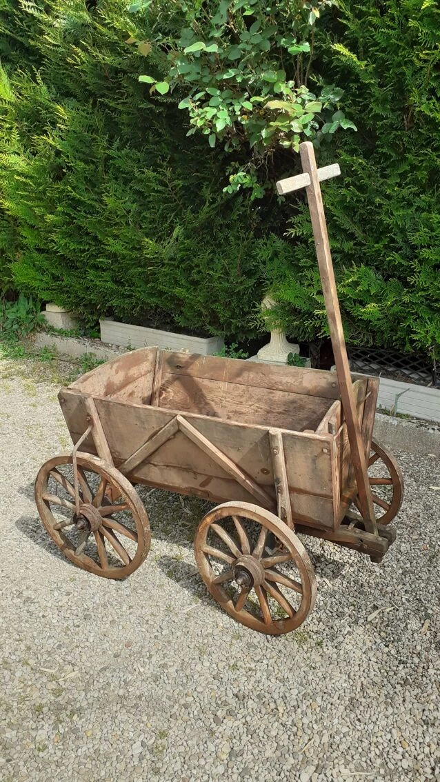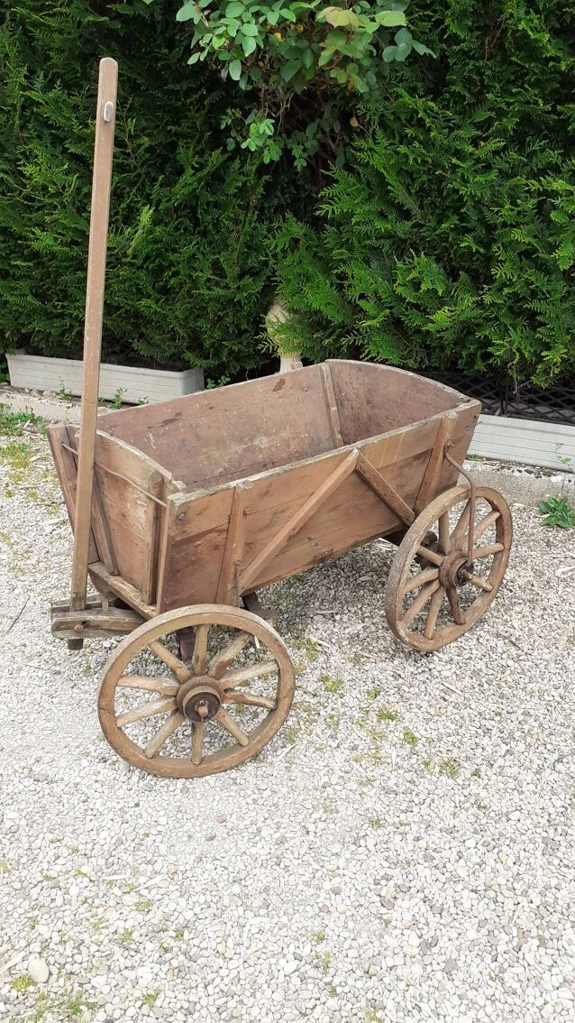 Dimension du chariot a bras, longueur 120 cm, largeur 70 cm, hauteur 65 cm, longueur avec timon 210 cm.nous sommes une entreprise spécialisée dans le débarras de maison et succession depuis plus de vingt ans.tous nos meubles sont traités, les prix sont établis suivant l’état des objets, traces du temps passé.