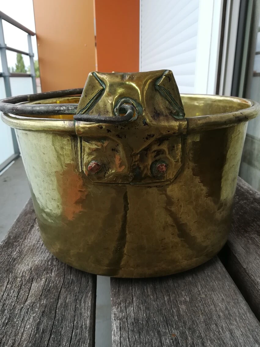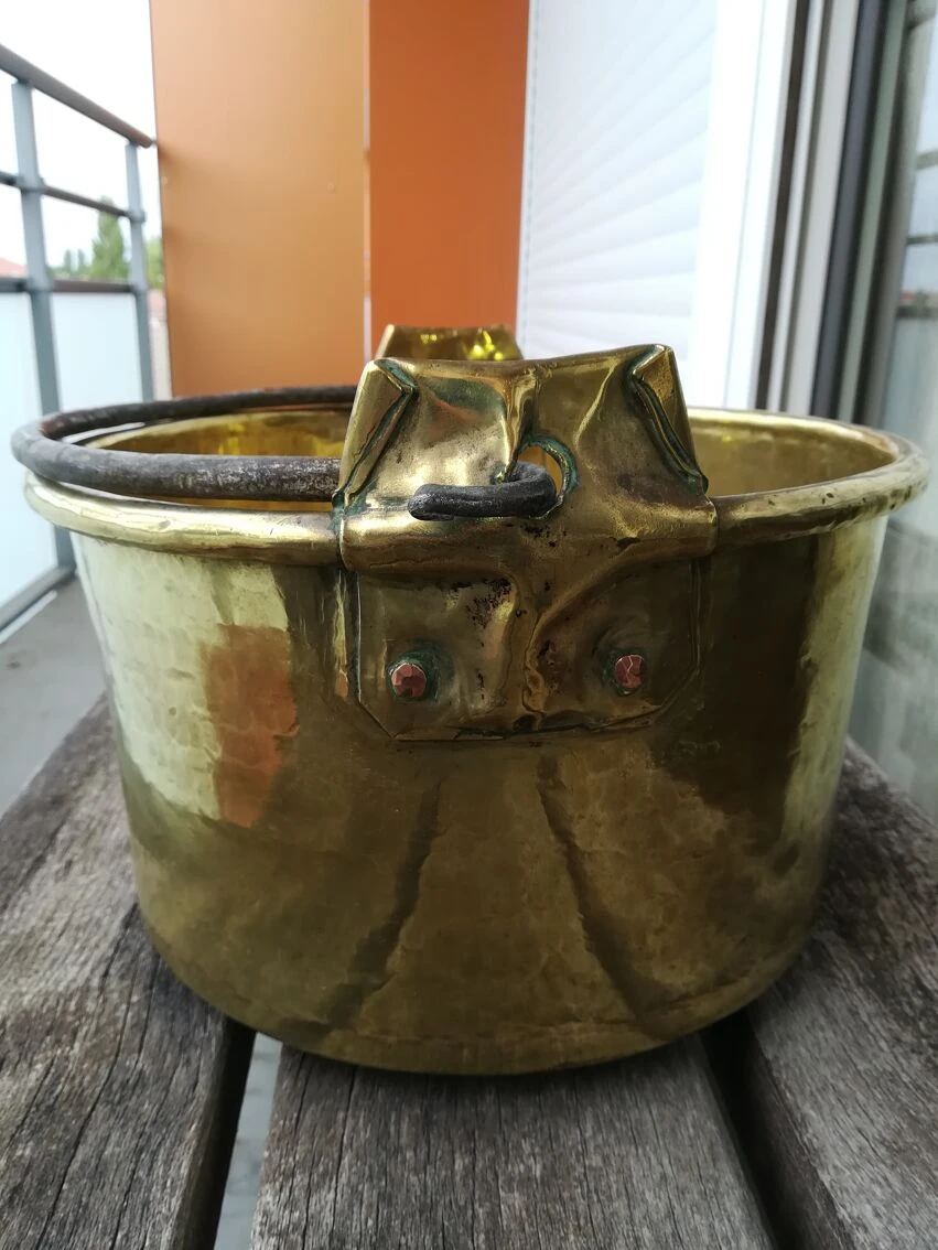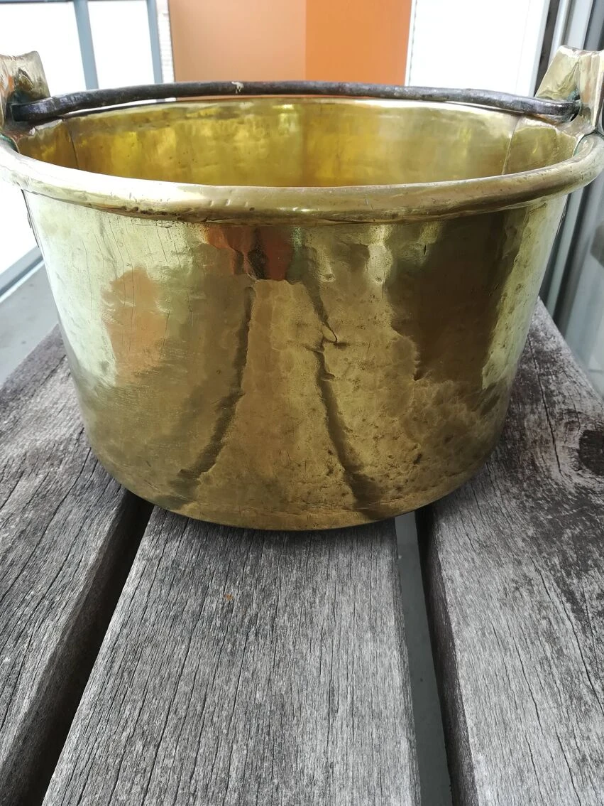 Magnifique chaudron en laiton ancien artisanal d’un diamètre de 31 cms sur 17 cms de hauteur