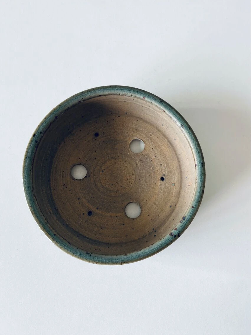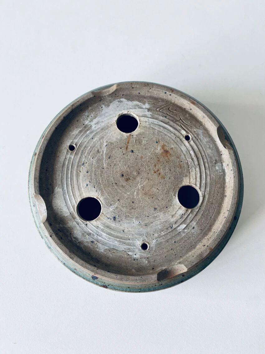 Belle et grande coupelle percée, pour pot de fleurs en grès émaillé.