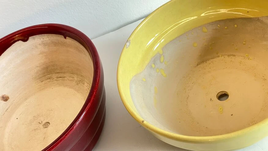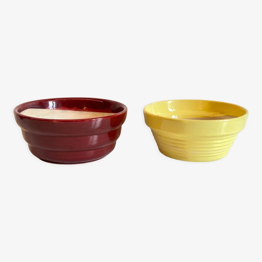 Chics et en très bel état, petit fêle sur le rebord intérieur du cache-pot jaune (visible sur les photos), on adopte !