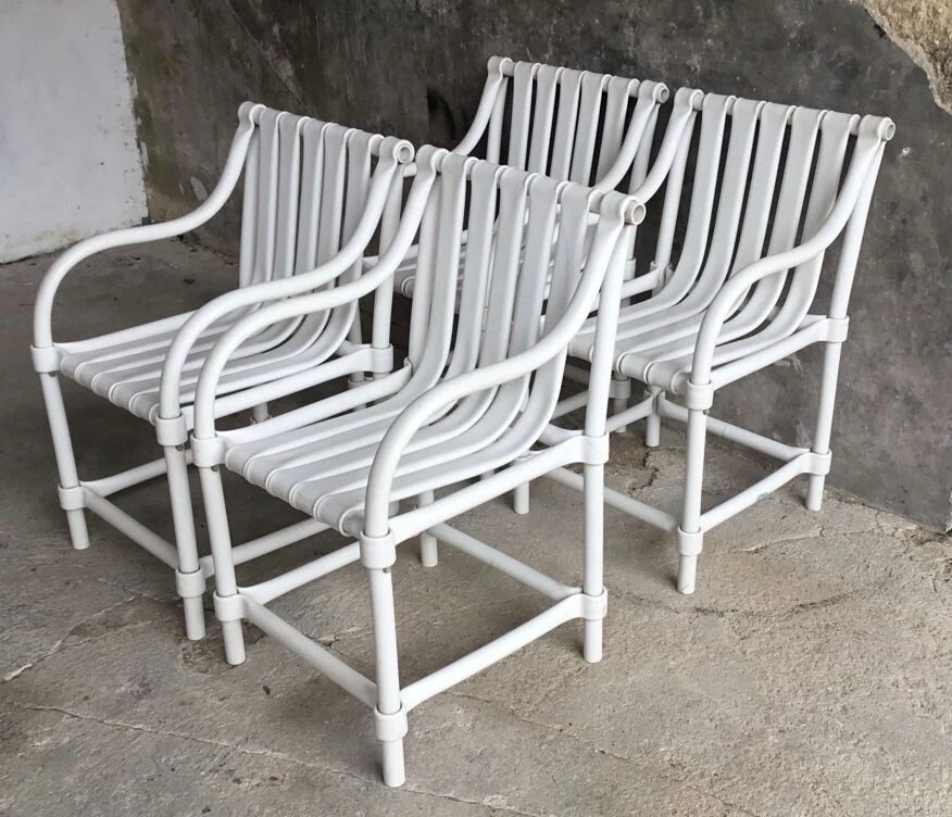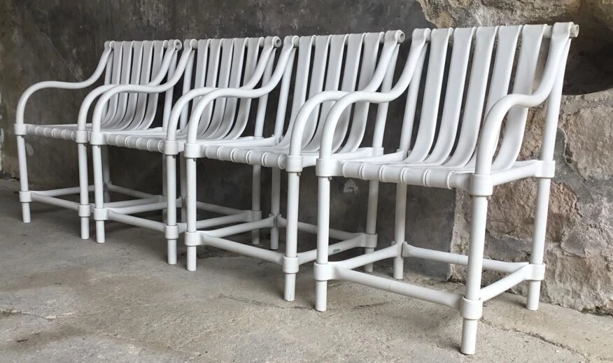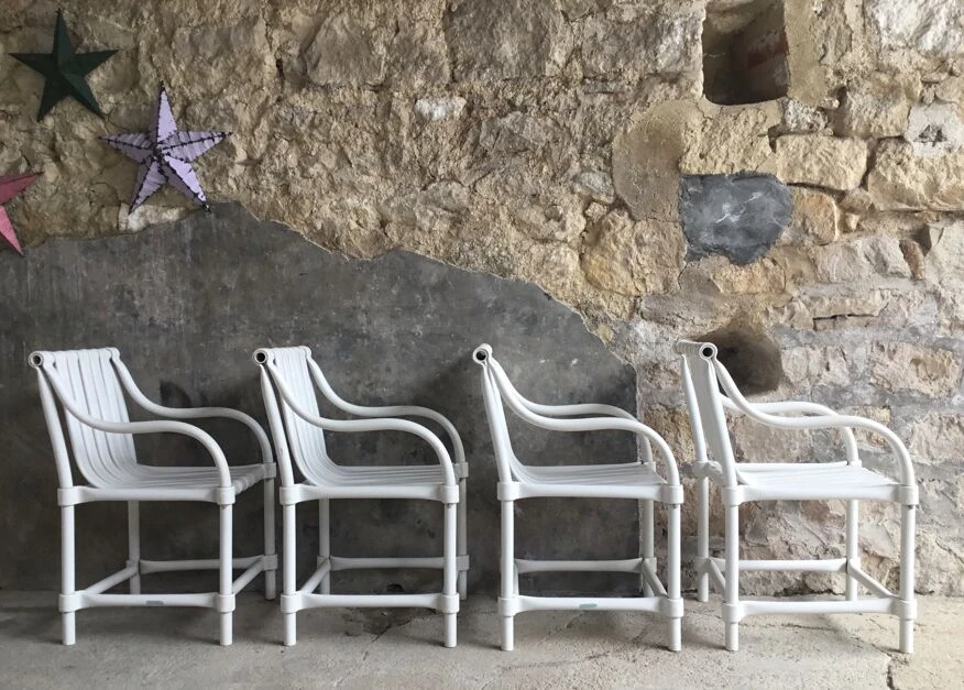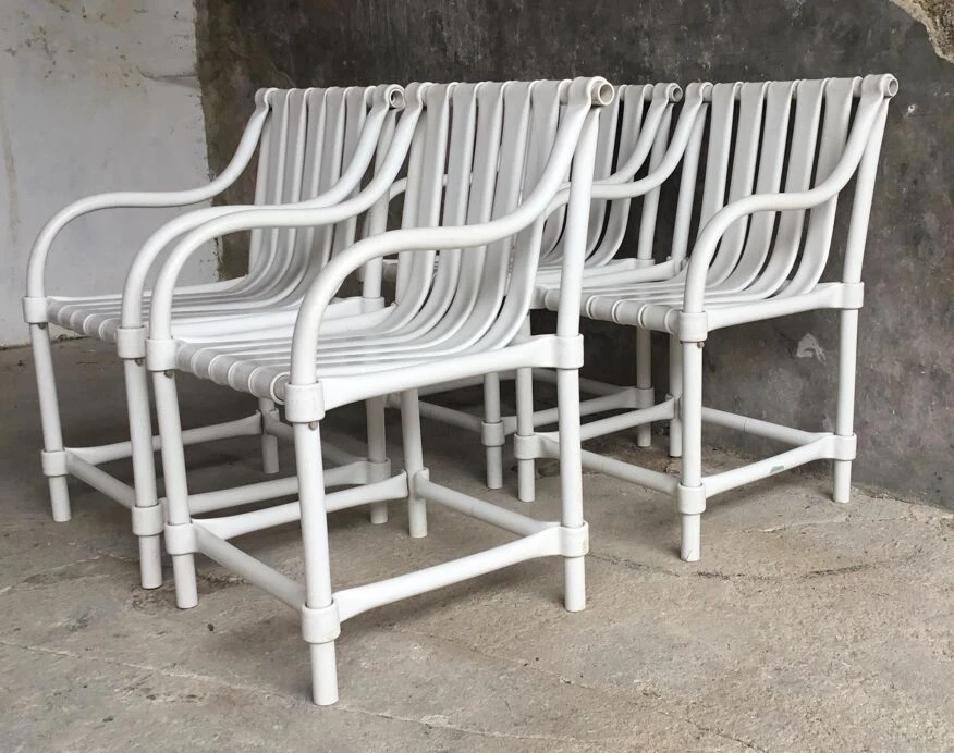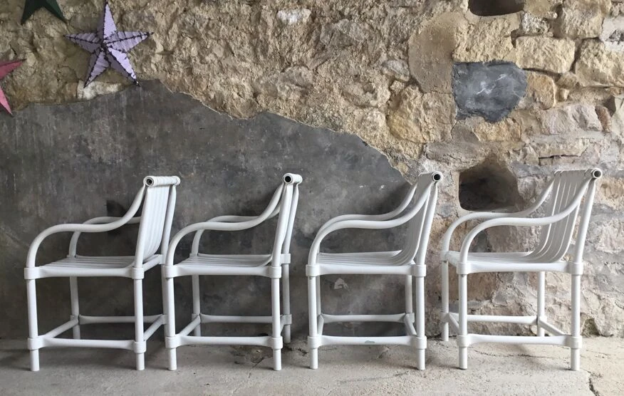 Ensemble de 4 fauteuils de jardin hugonet, design 1970 made in france.