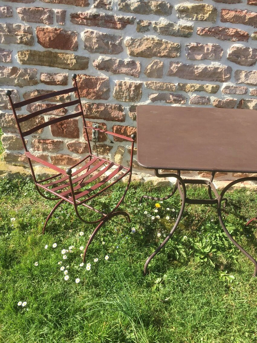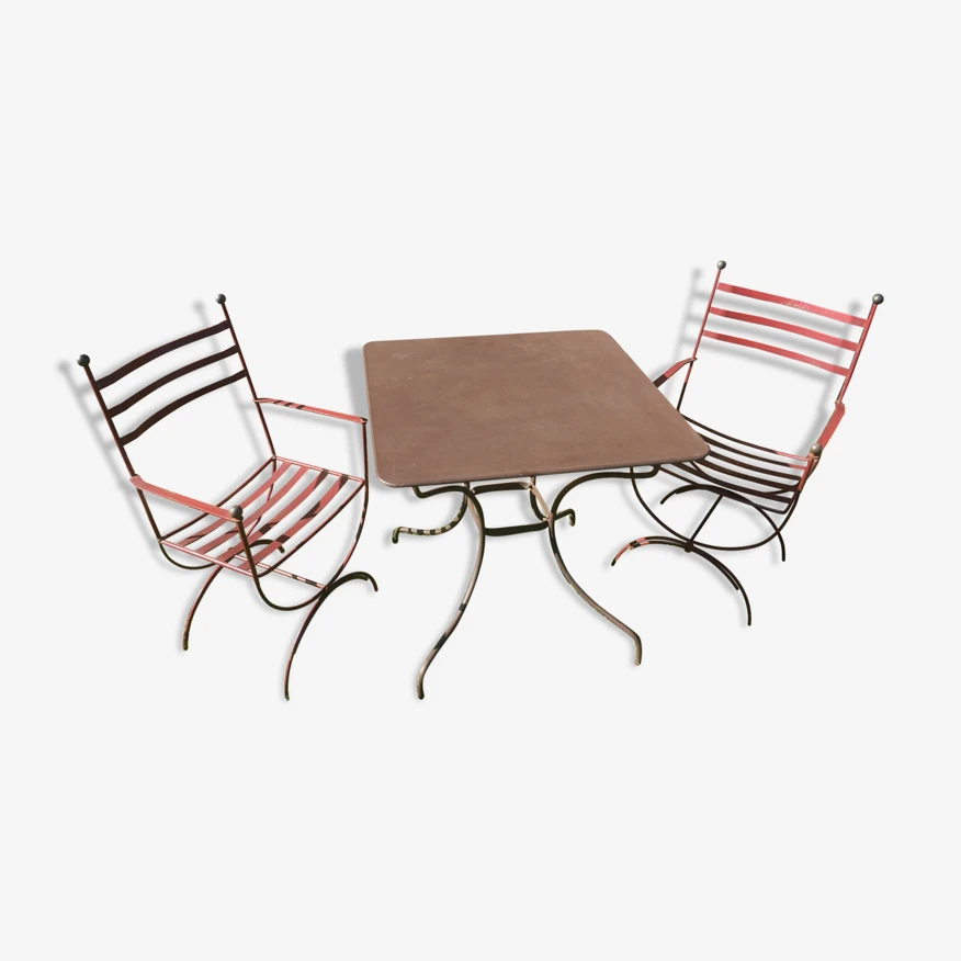Ensemble de jardin en fer forgé (1 table + 2 fauteuils) fauteuils 50x40x93 table 77x77x75.