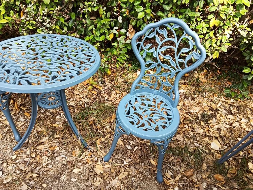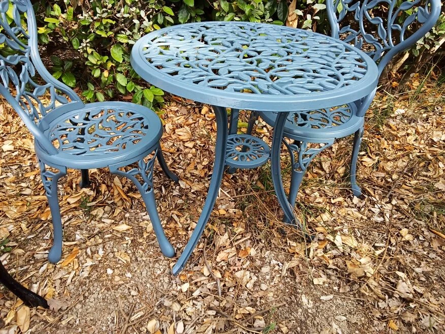 L’ensemble est peint en bleu provence avec une peinture spéciale fer antirouille.