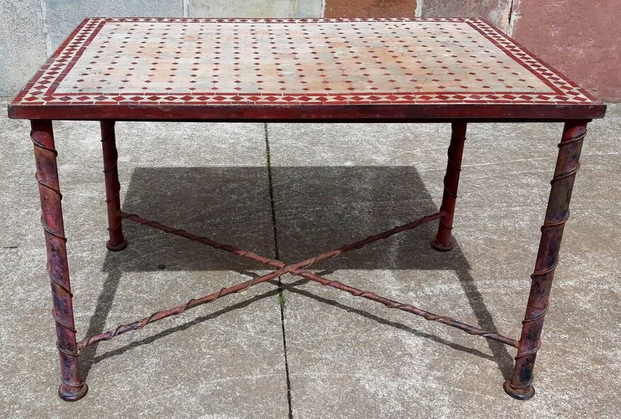Couleur rouge basque dominante avec jolie patine venant des marques d’ usage et de l’ âge de l’ ensemble.