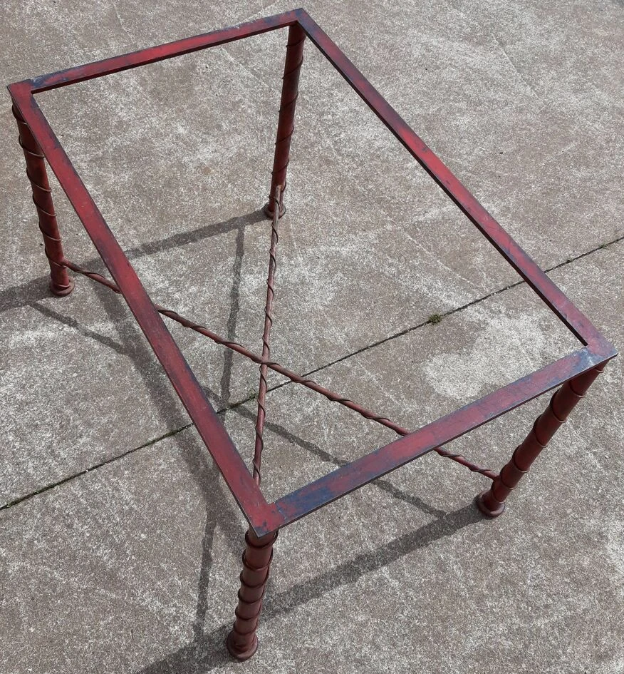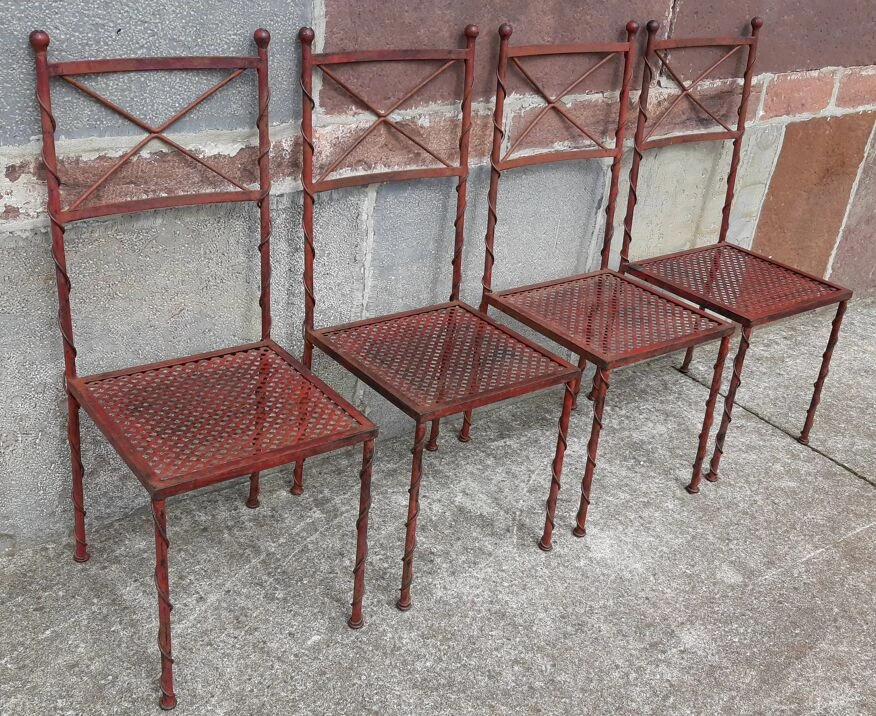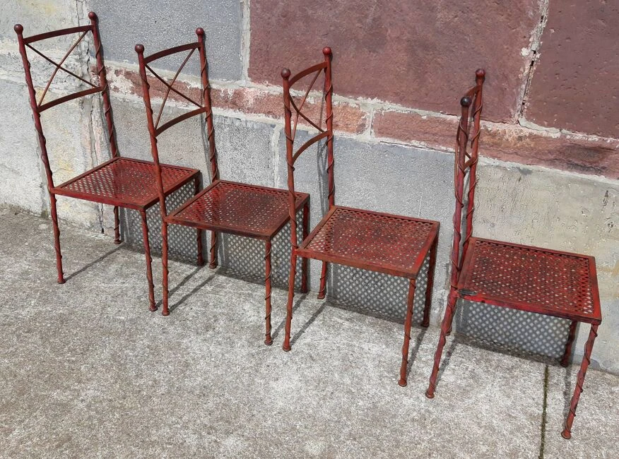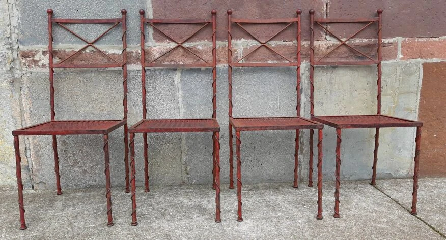 Les piètements et la structure des chaises sont embellis par un fil torsadé enroullant les montants.