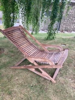 Chaise Longue Pliante En Teck Massif Vintage Scan Com, Années 80