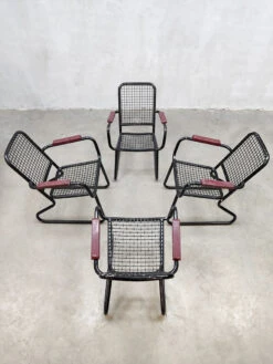 Ensemble De 4 Chaises De Jardin En Rotin Et Fer Par Frederick Weinberg, États-Unis Années 1950