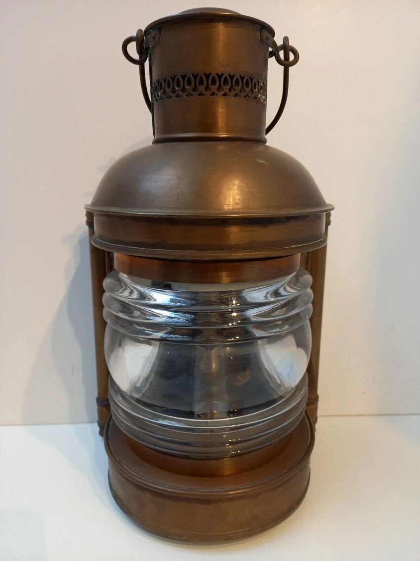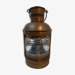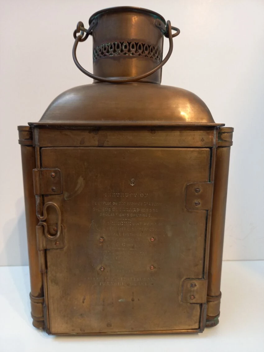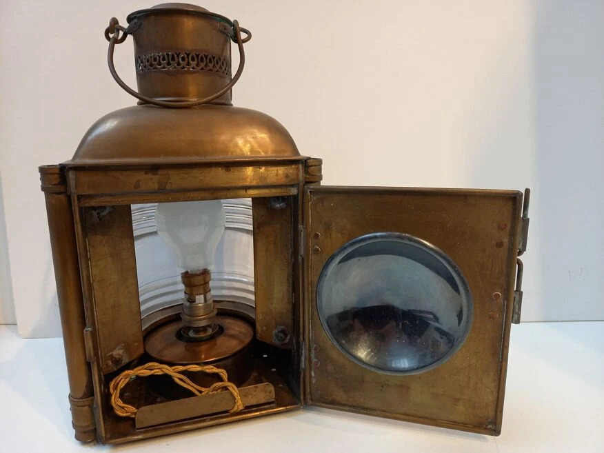 Fanal de mâture de la marine nationale, modèle 1925, cuivre et laiton, monté en lampe.