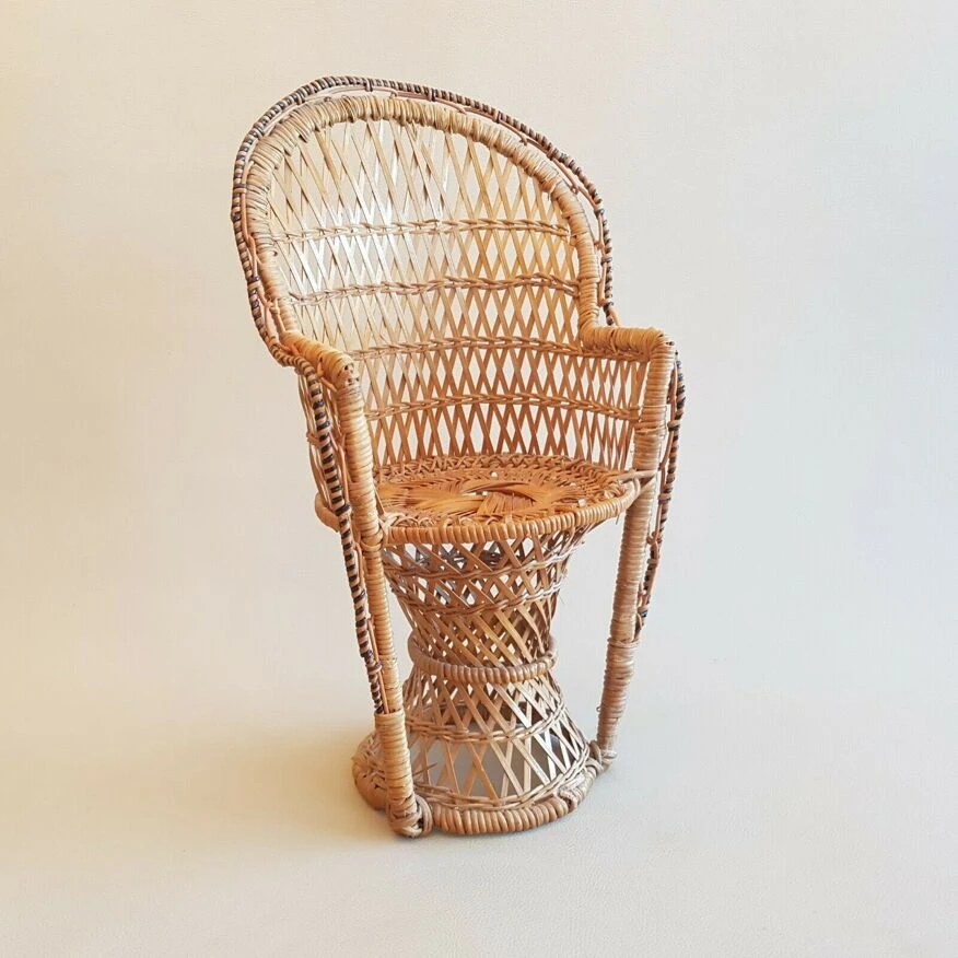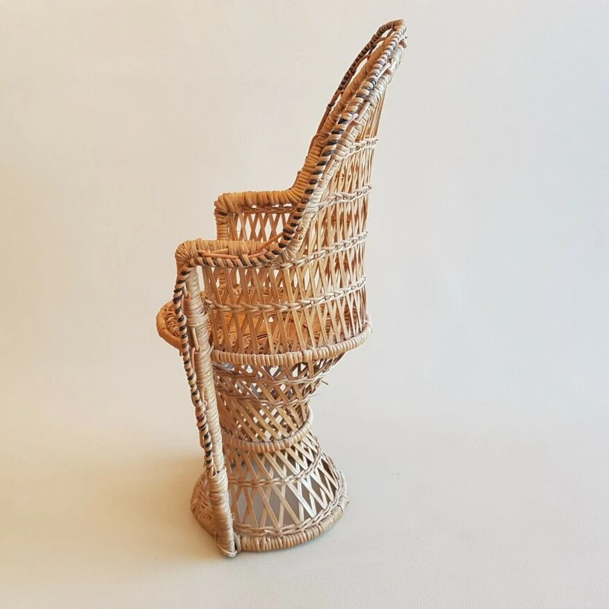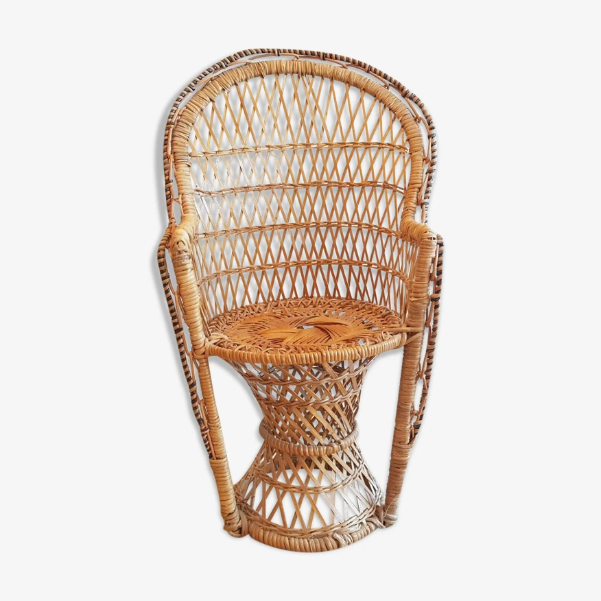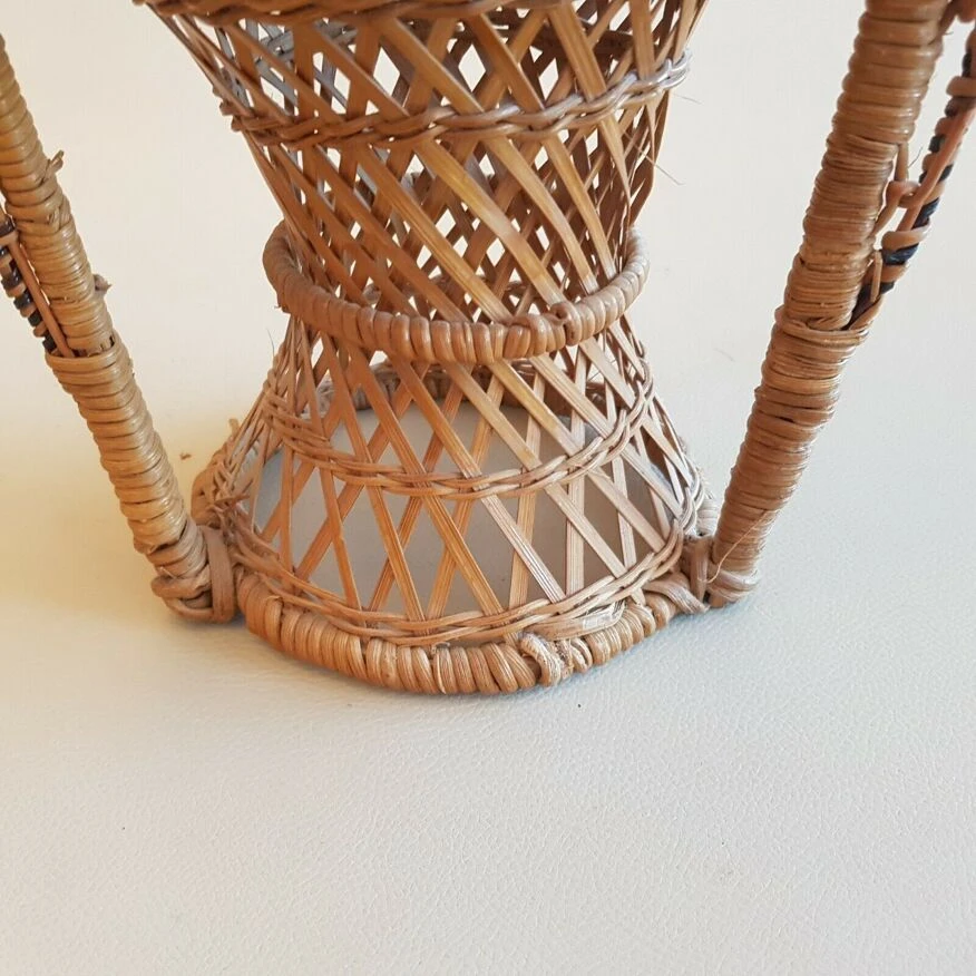Joli petit fauteuil déco vintage années 70 emmanuelle osier rotin pour plante.