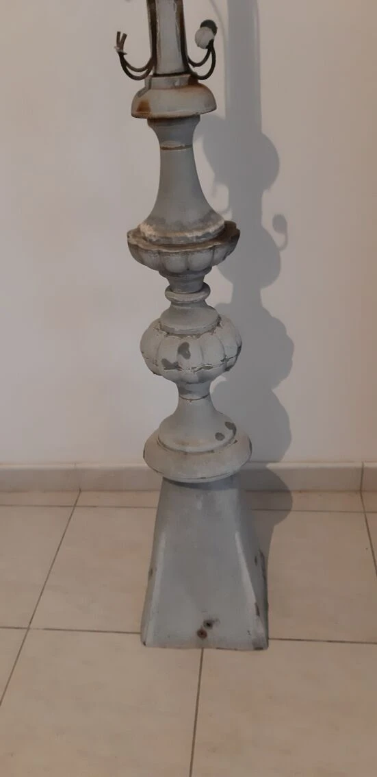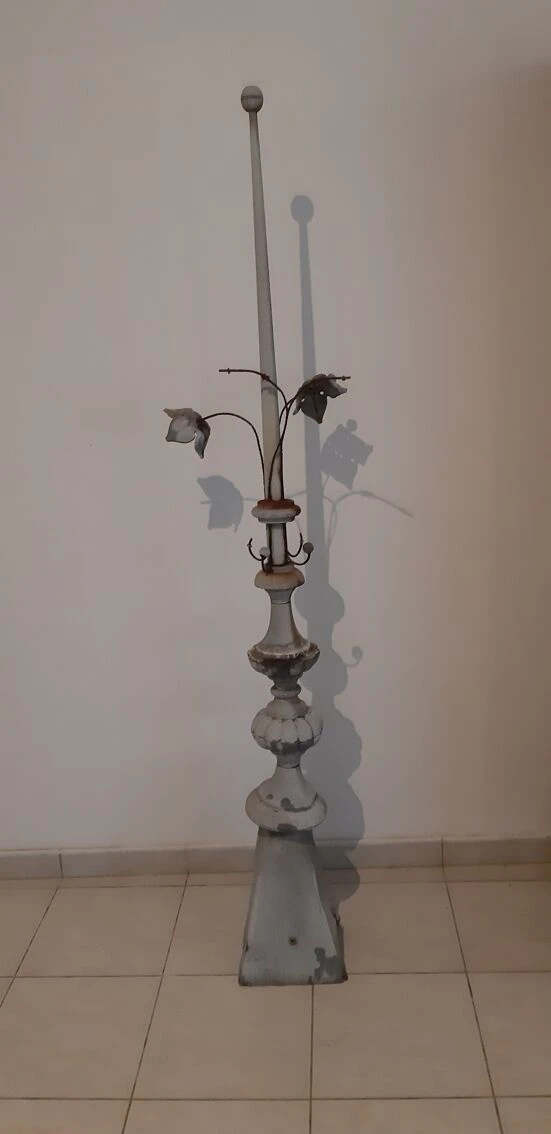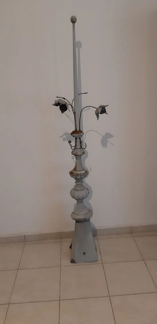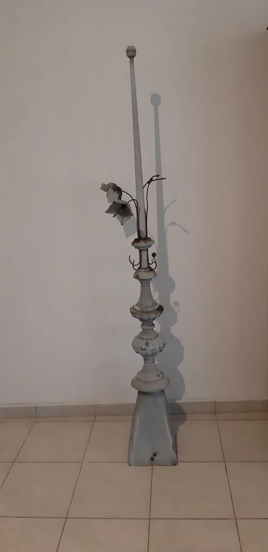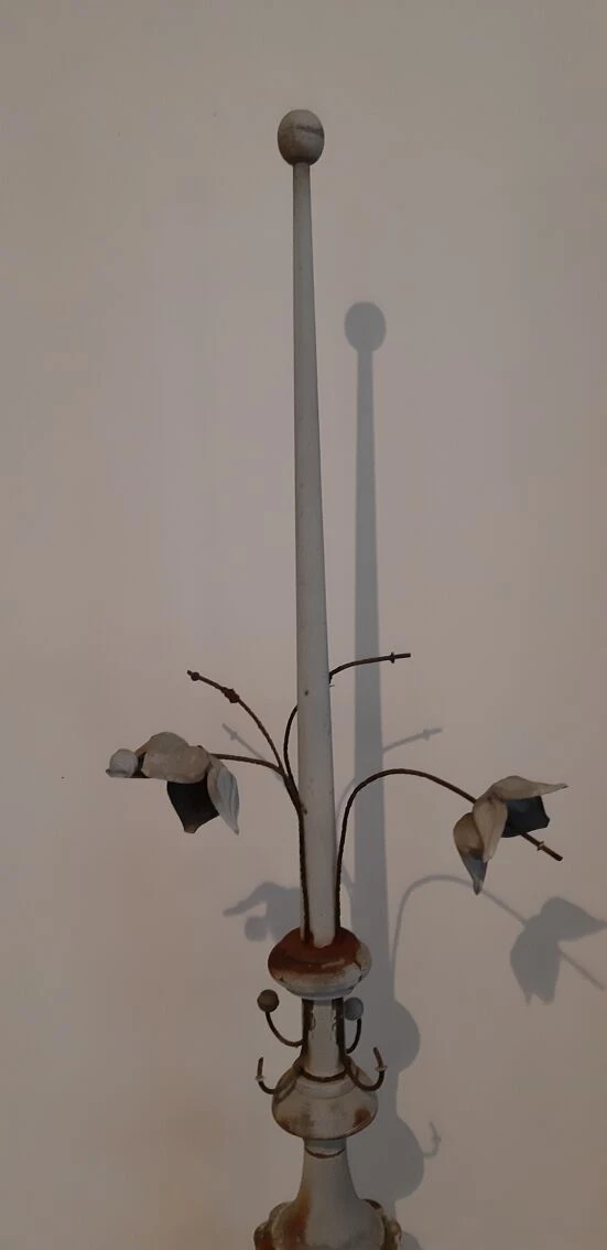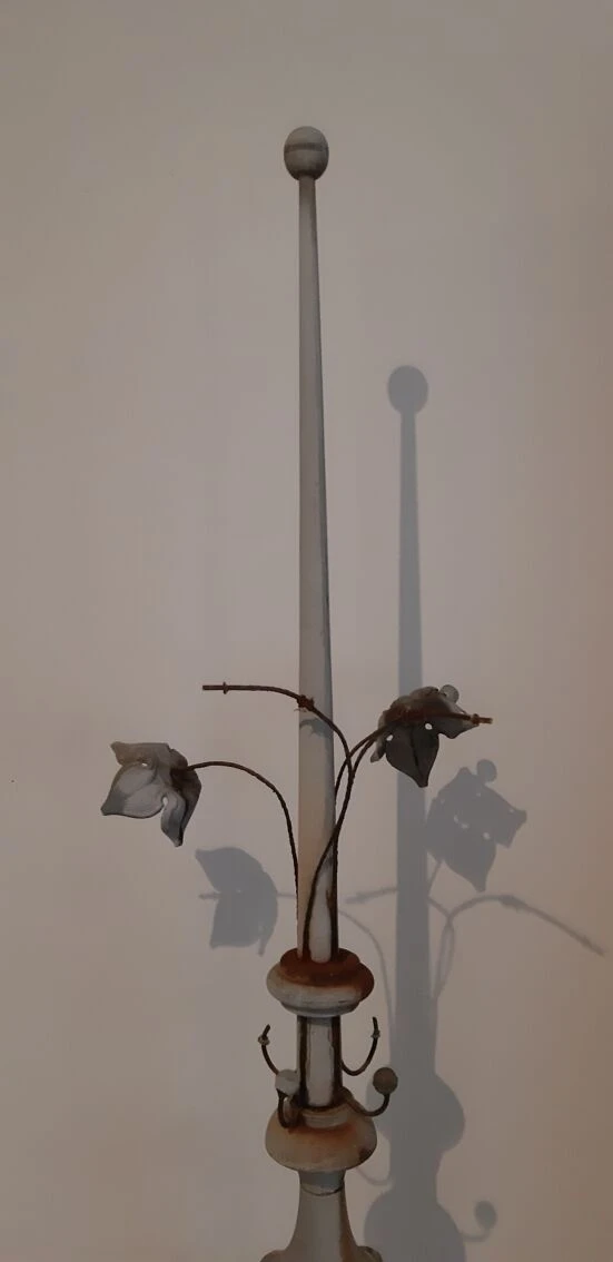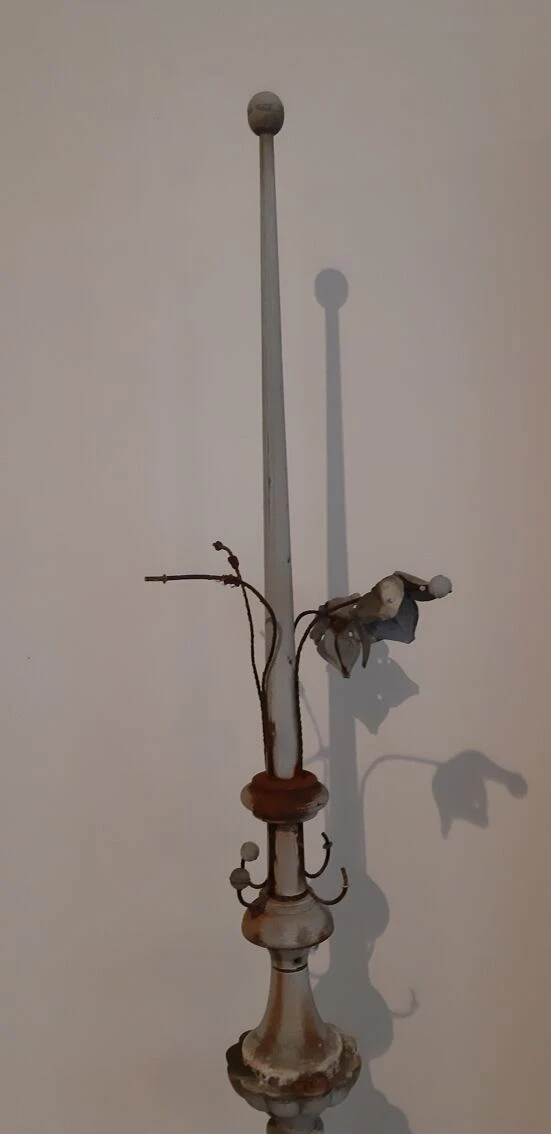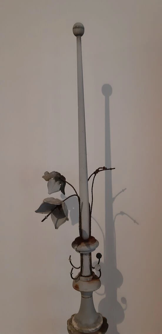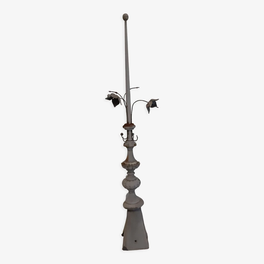 Fléche de faitage en zinc 19 éme haut: 179 cm, diam bas: 22 cm, poids: 20 kg, en l’état manque 2 fleurs sinon bon ètat pour le reste.