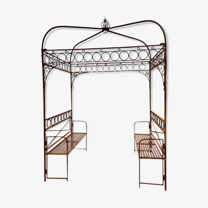 Gloriette / Pergola De Jardin En Fer Avec 2 Bancs