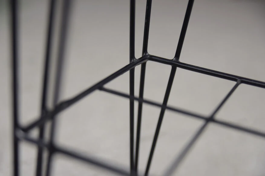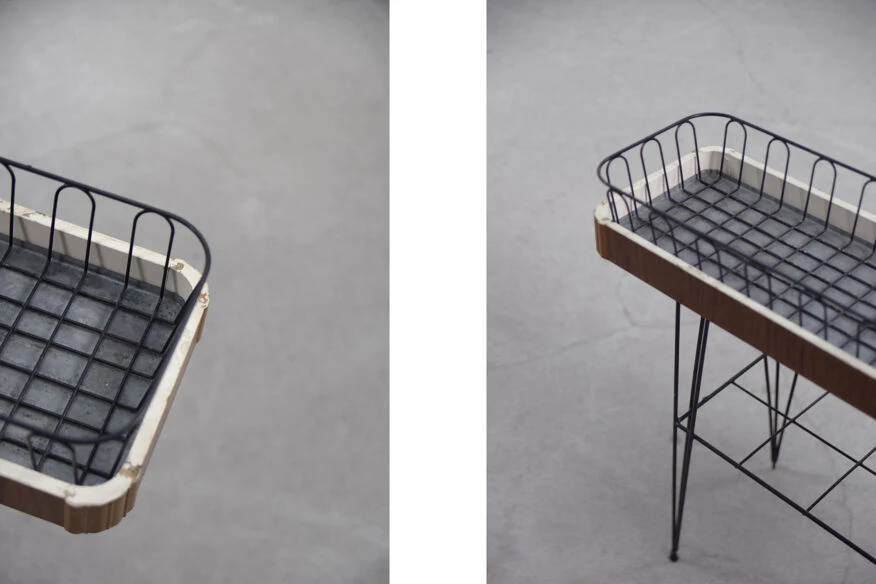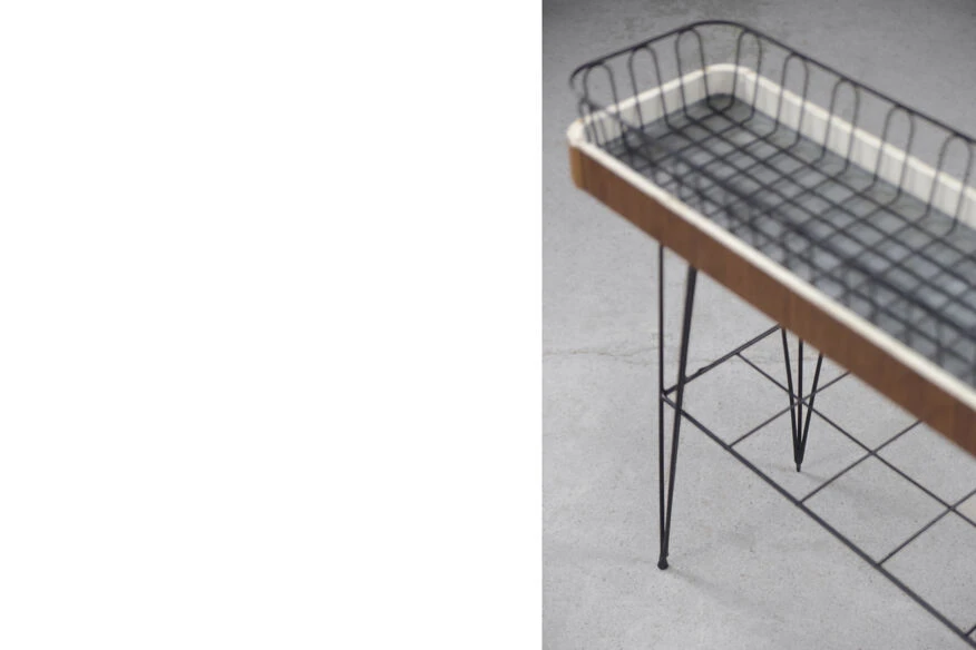 Le panier végétal est monté sur des pattes en épingle à cheveux en métal.