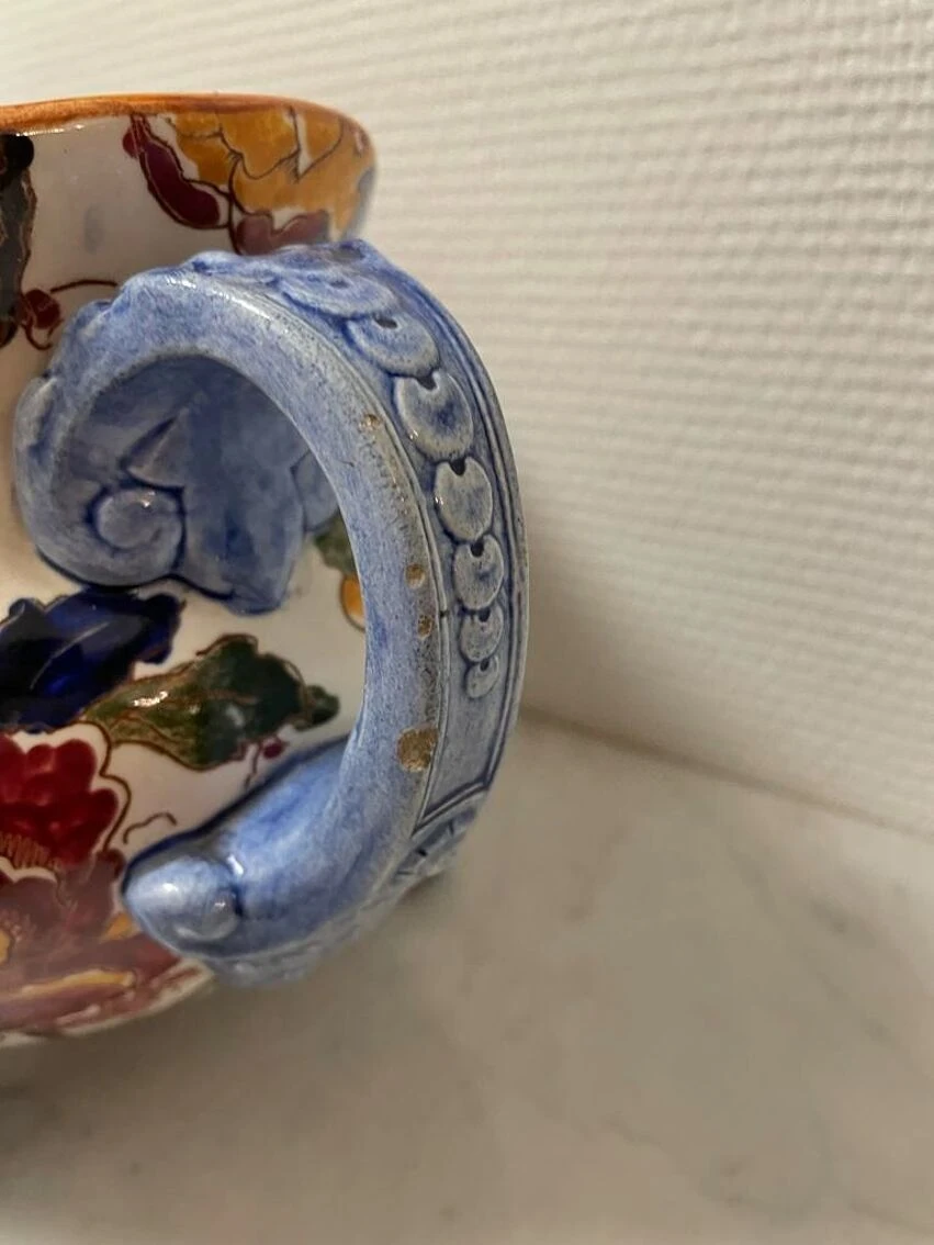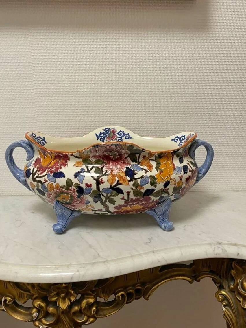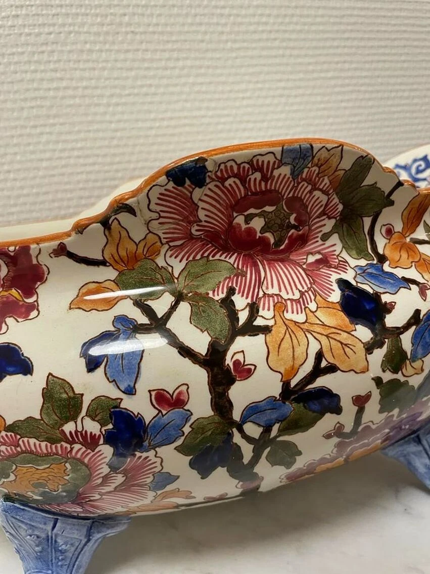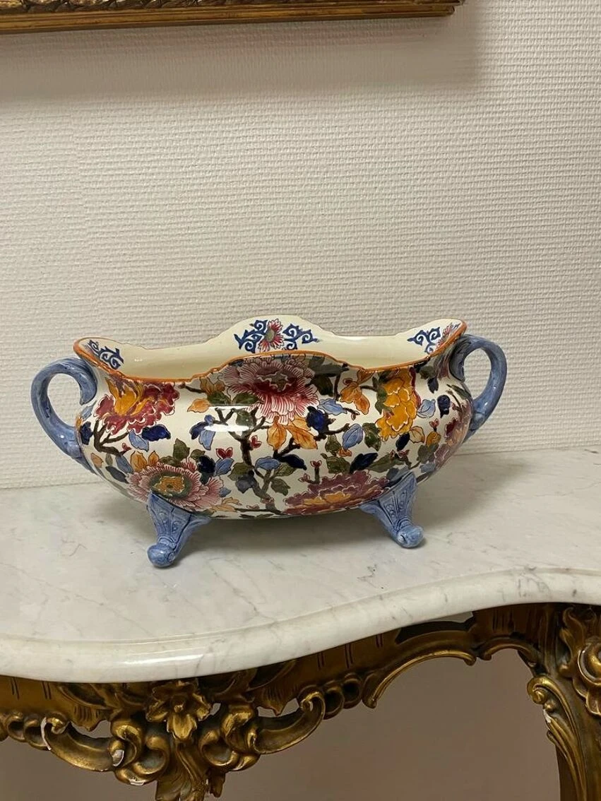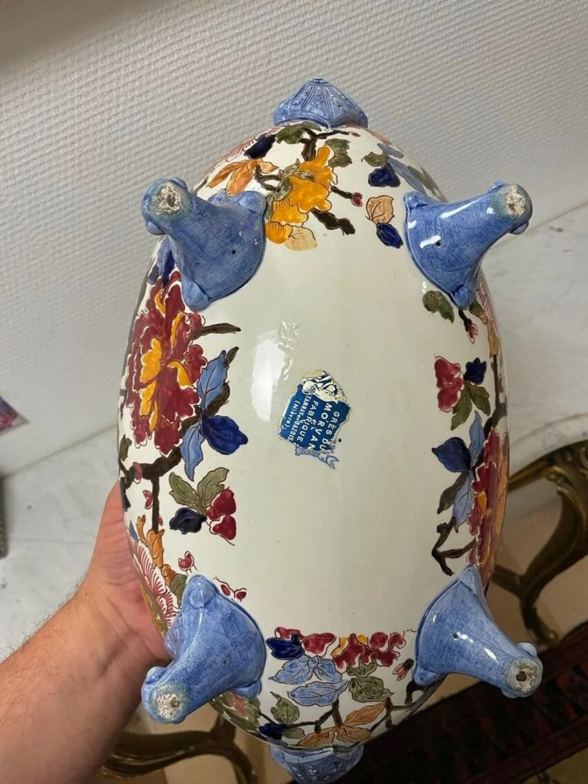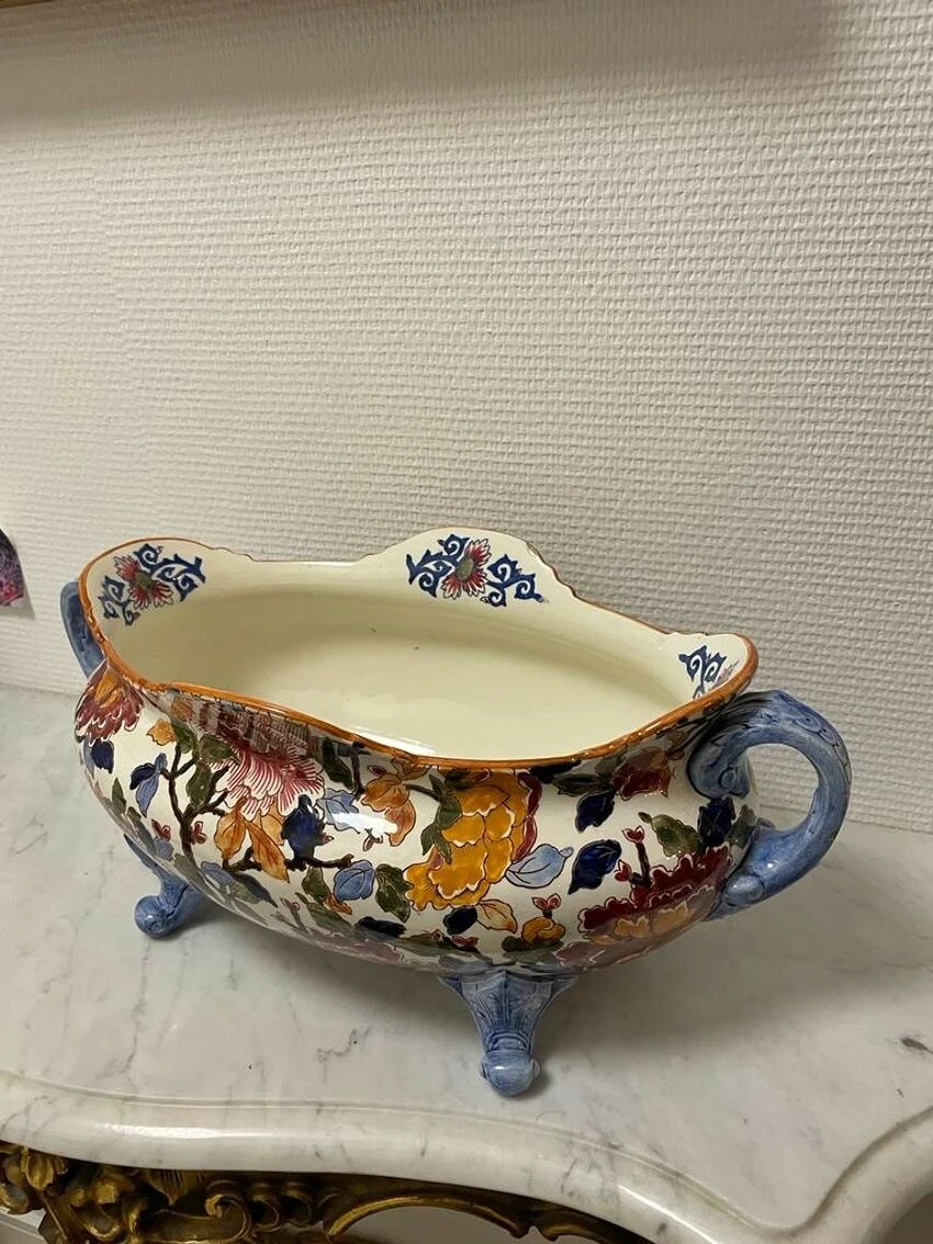 Ancienne et grande jardinière céramique de gien pivoine tampon 1960/71 –