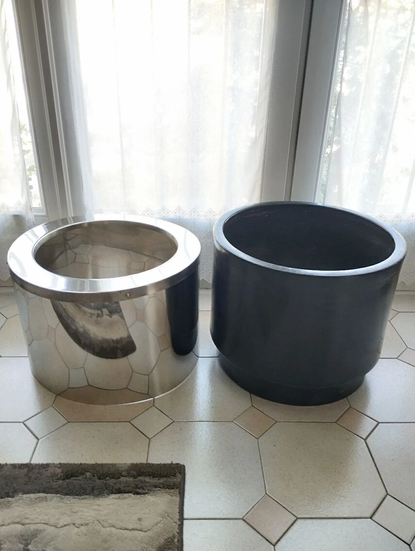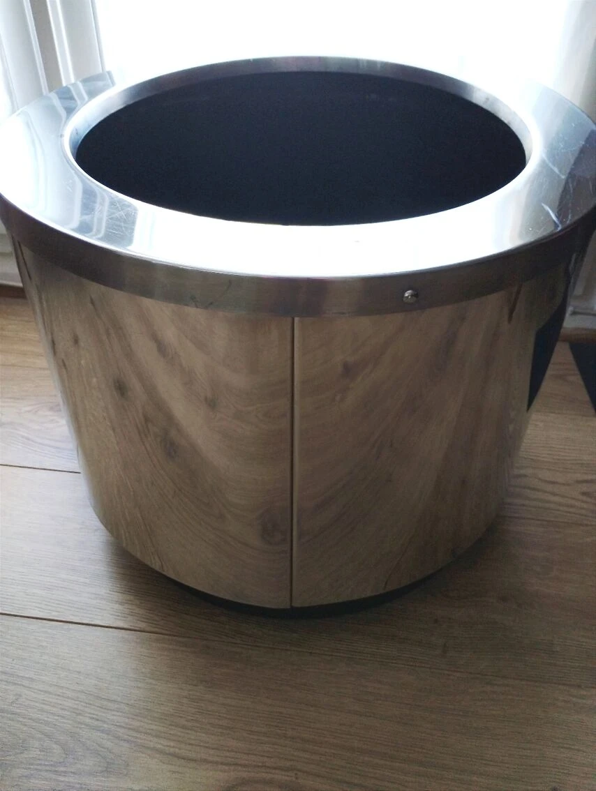 En inox (avec quelques rayures et tâches d’usage).