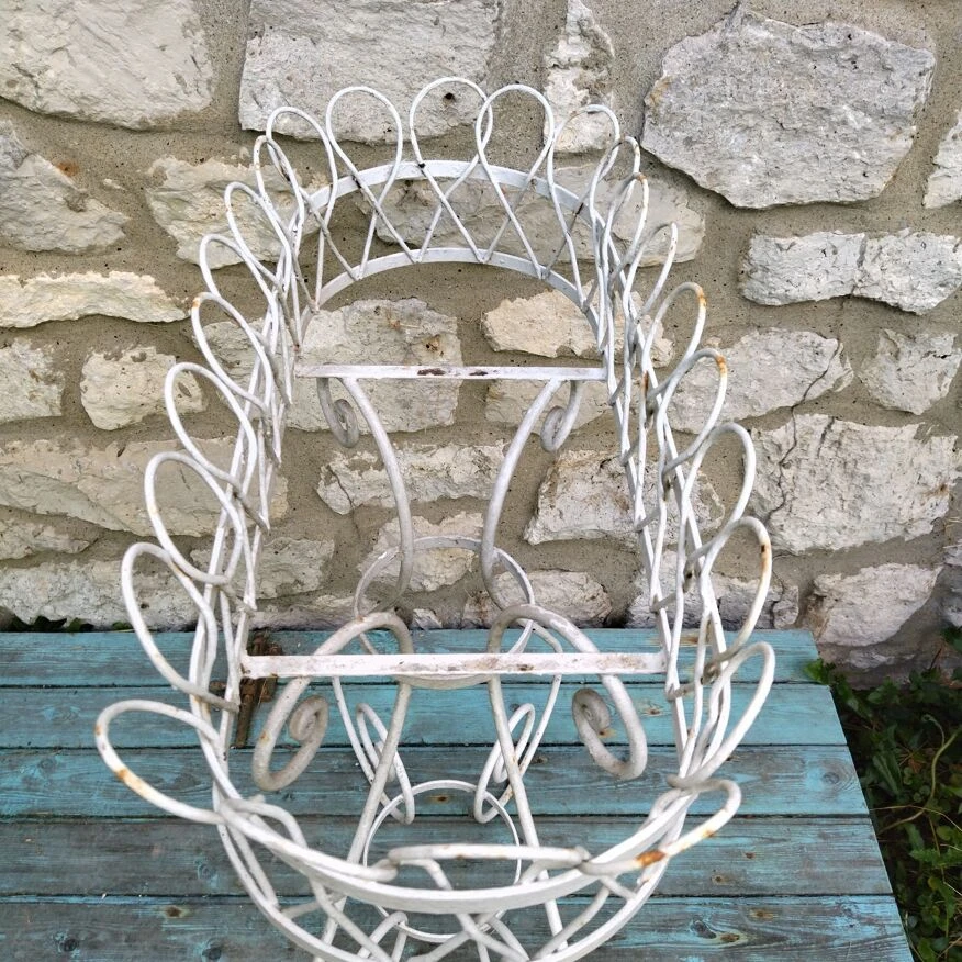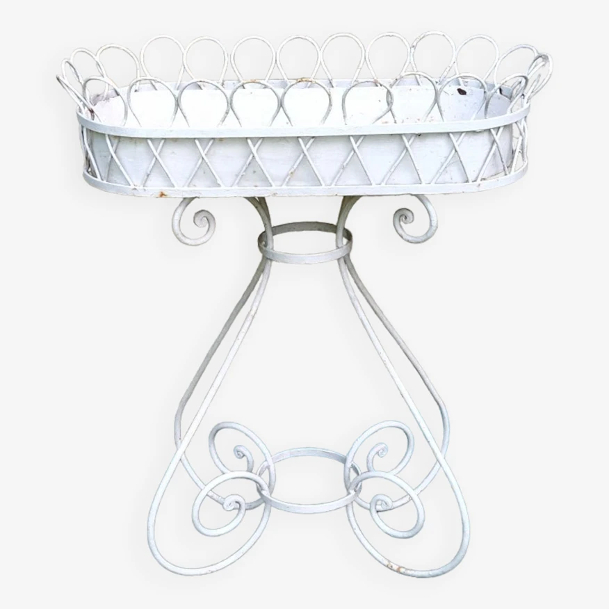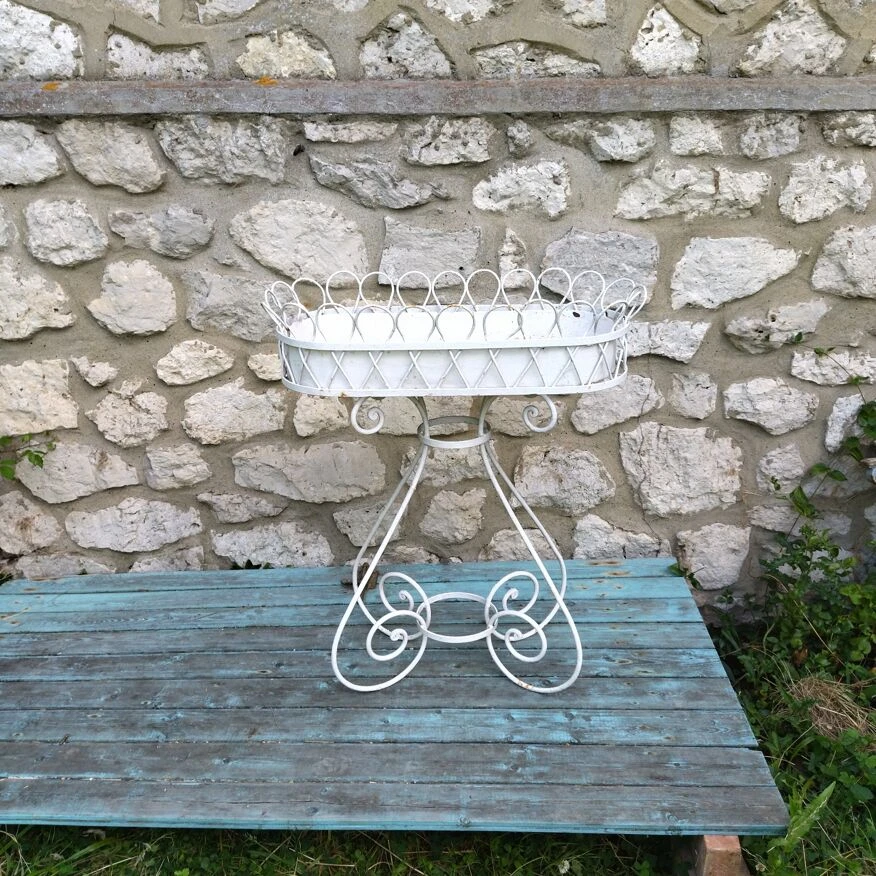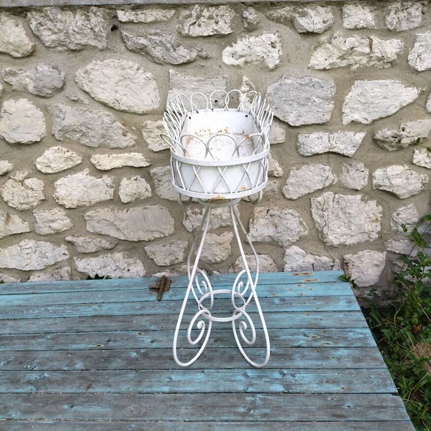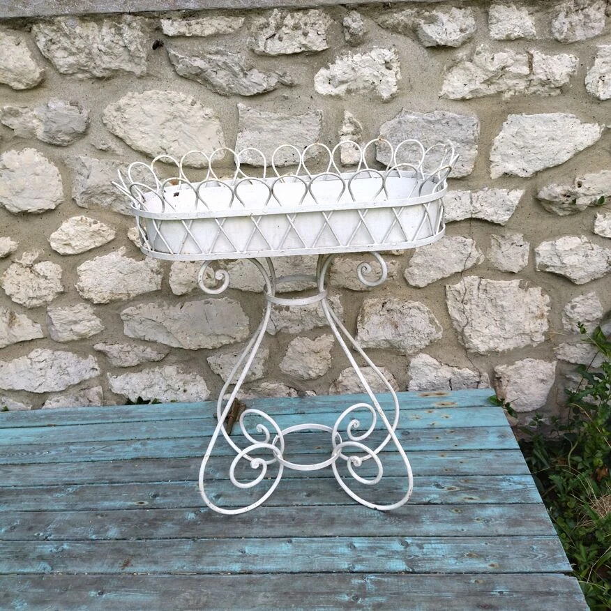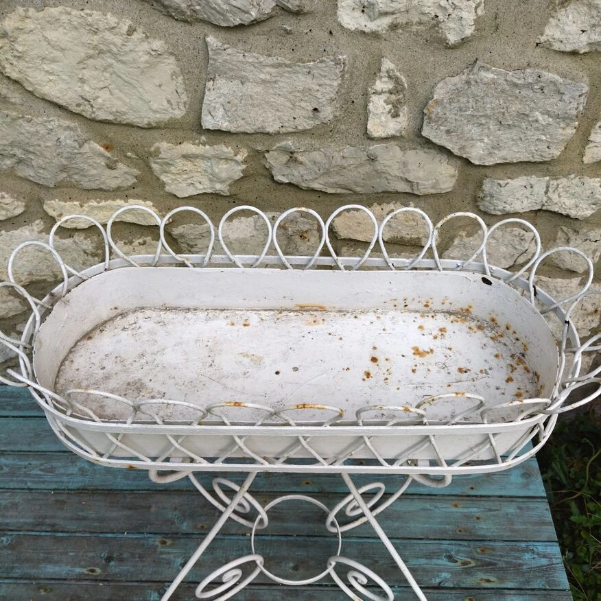 Jardinière haute de 86 cm, bac en zinc.repeinte en blanc, oxydation de surface par endroits, peinture écaillée.