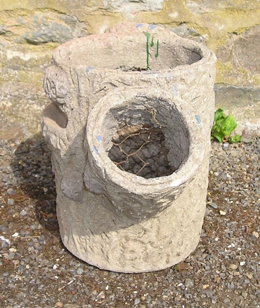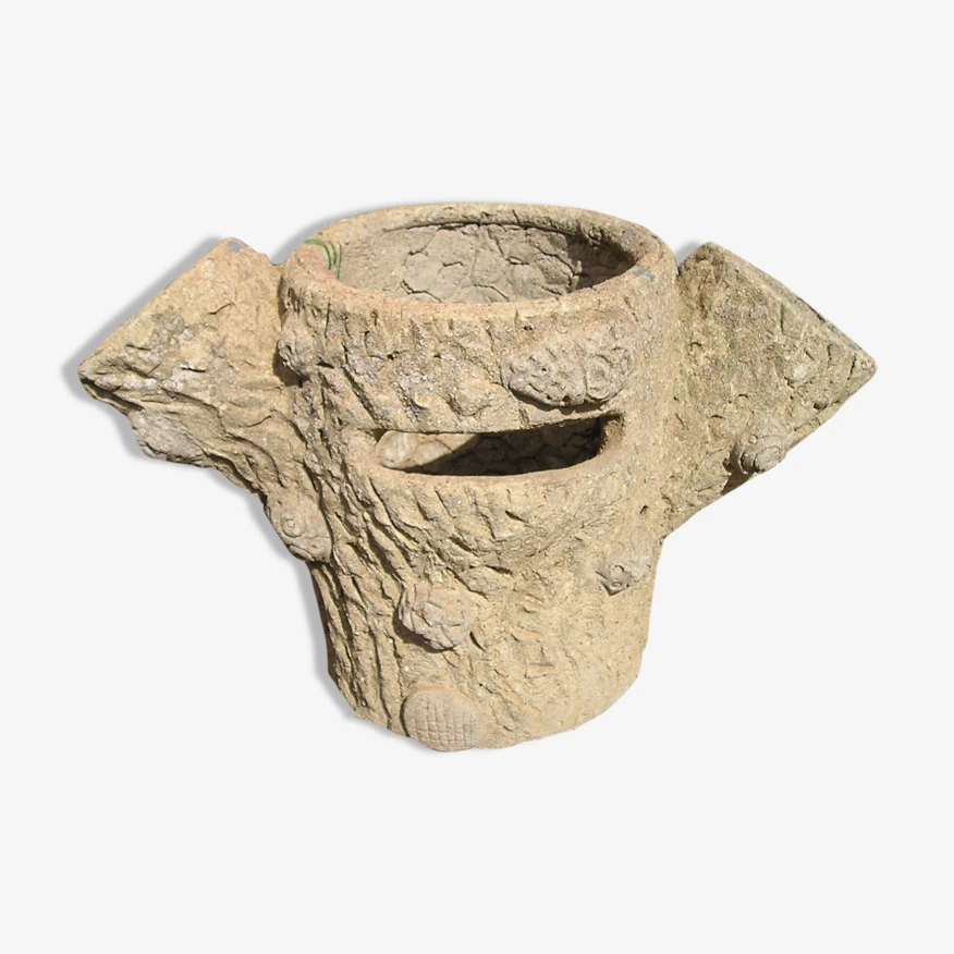 Jardinière tronc d’arbre à 3 trous en bon état.
