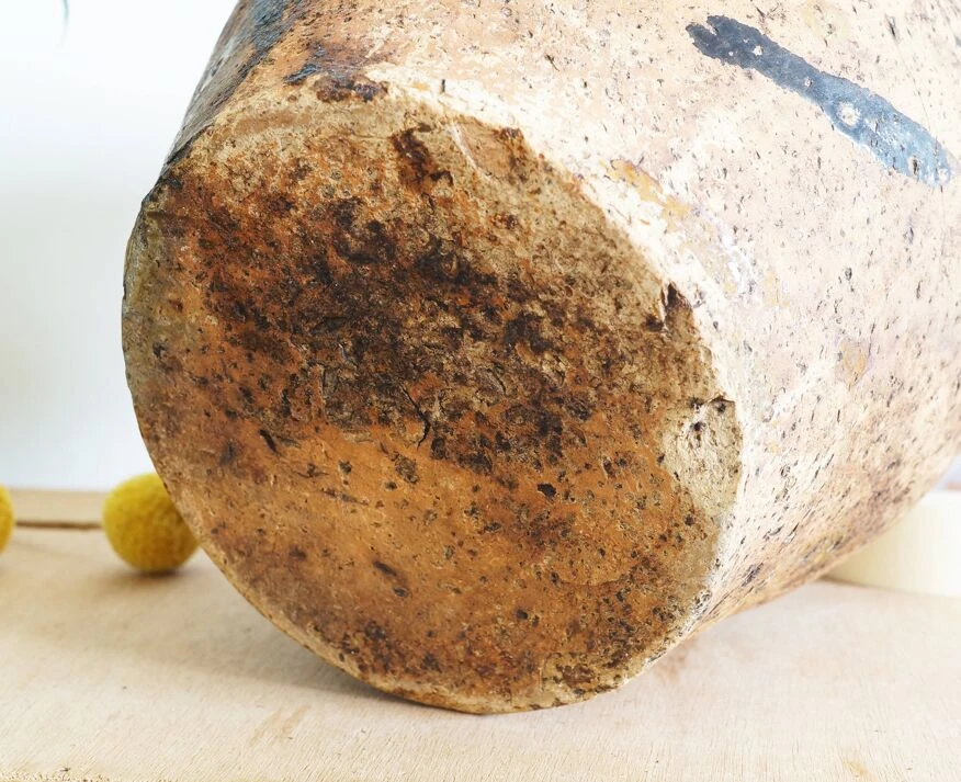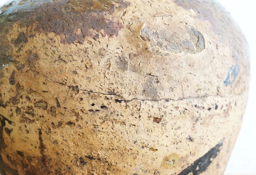 Cette jarre est très ancienne et porte de nombreuses traces du temps.
