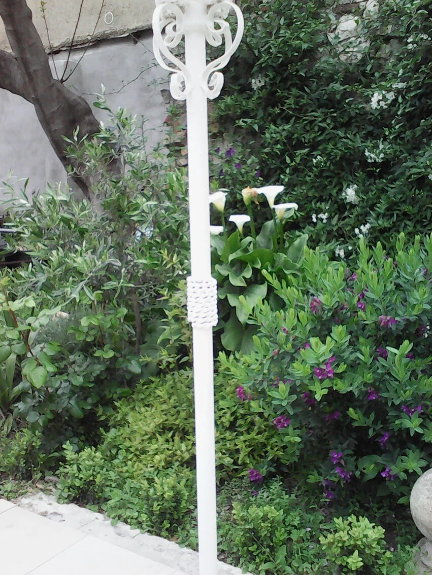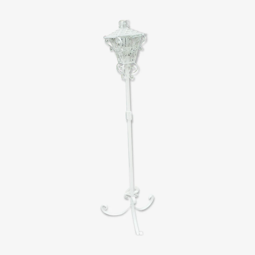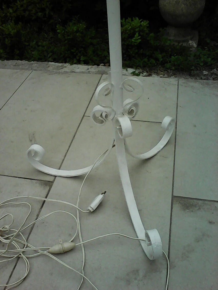 Joli lampadaire de jardin ou de terrasse en fer forgé peint en blanc, années 50/60.