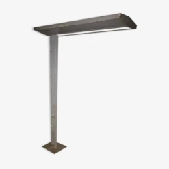 Lampadaire de station service des années 50/70 en fer et tôle fonctionne, le socle en bois et rapporté, à l’origine la semelle était fixe dans le béton.