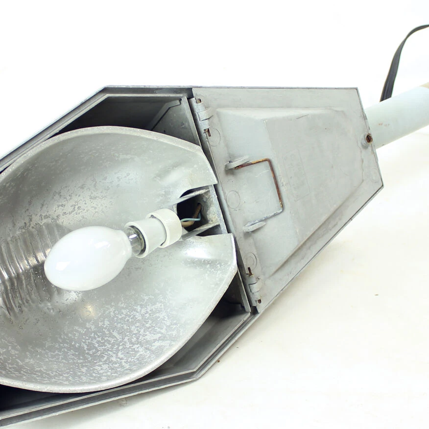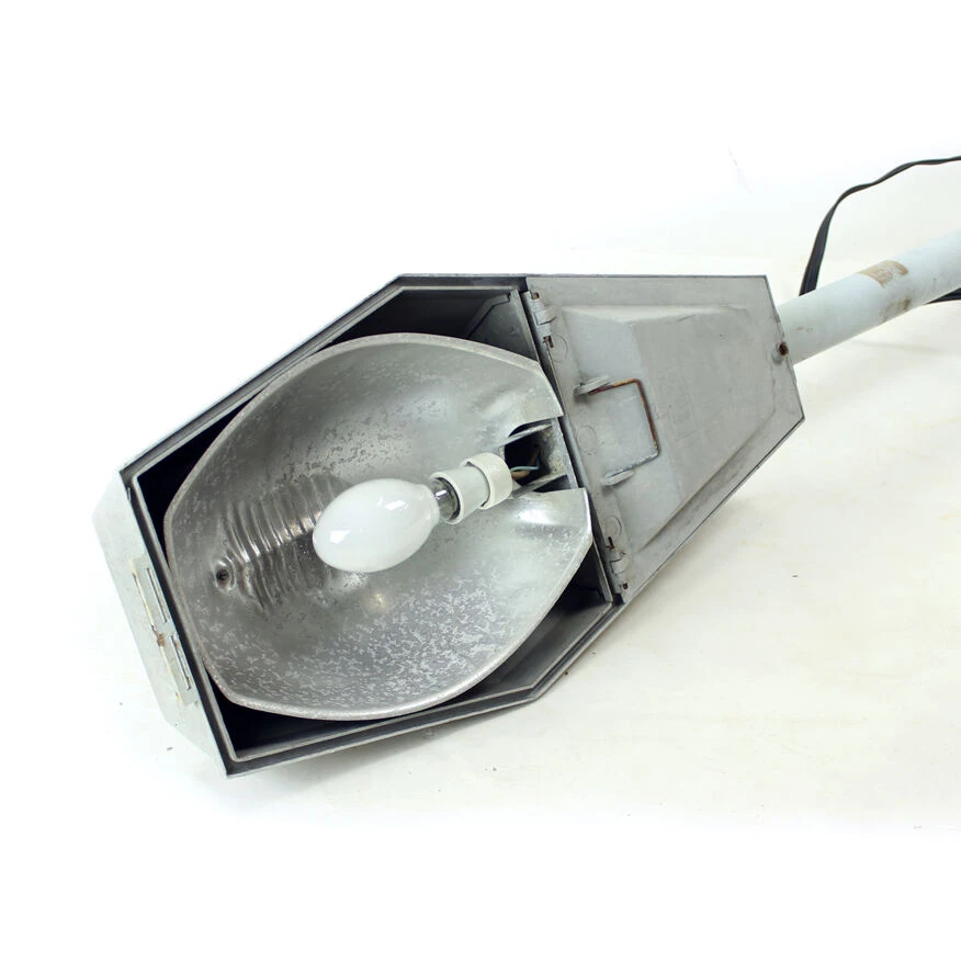 La lampe repose sur une solide construction en acier qui contient un bouclier en fibre de verre.