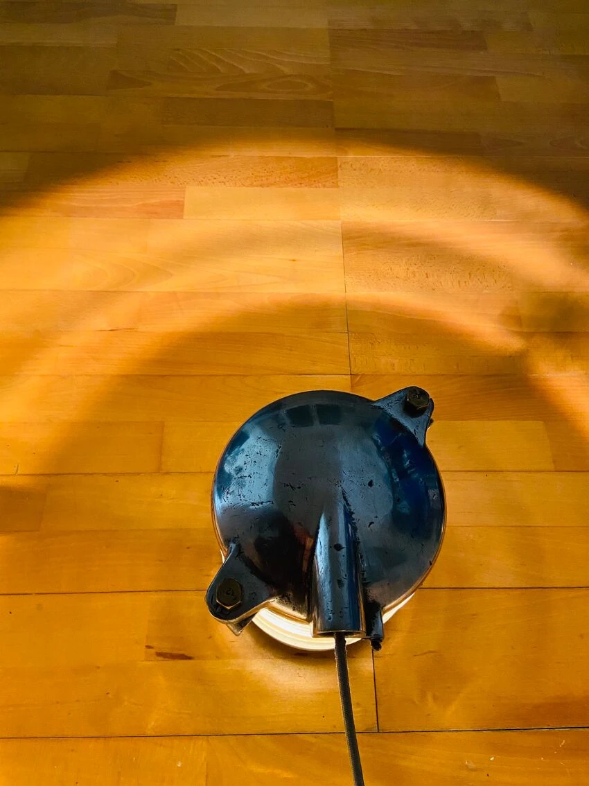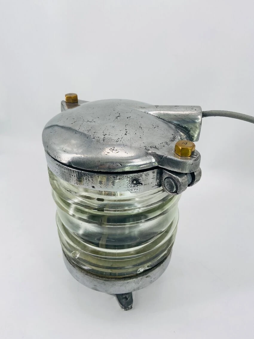 Cette ancienne lampe de bateau projette sa lumière à 360 degrés.