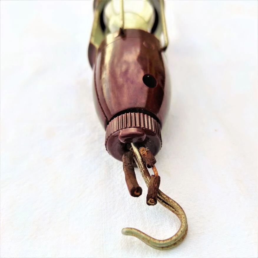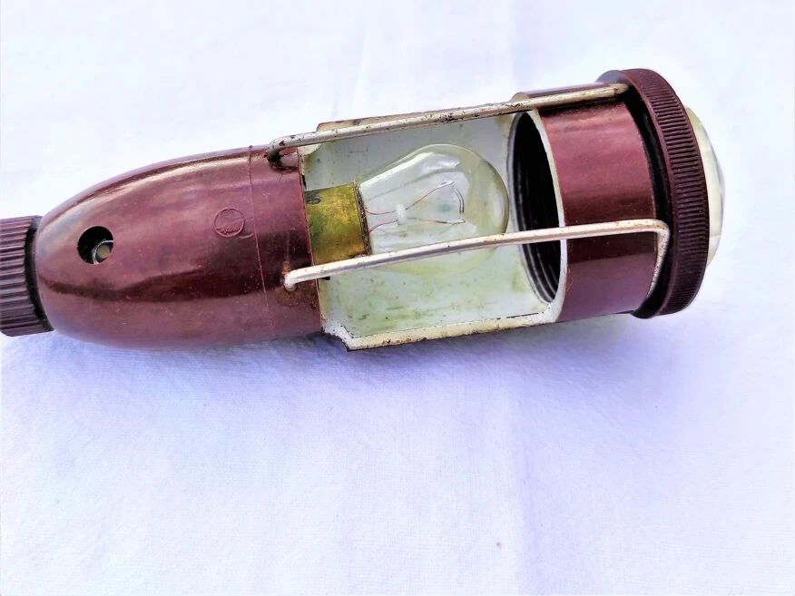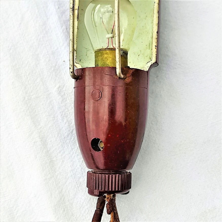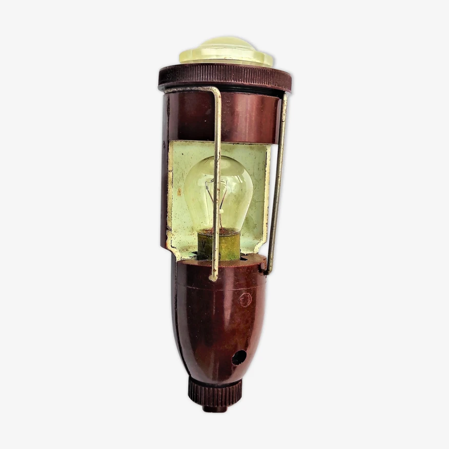 Lampe baladeuse en bakélite pour voiture ancienne avec son crochet de fixation.