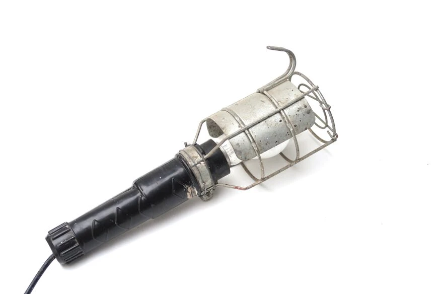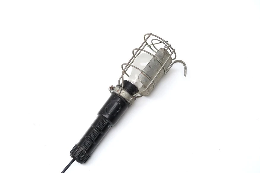 Lampe baladeuse « cage », design industriel, années 50.30 cm de longueur. 8, 5 cm de diamètre.