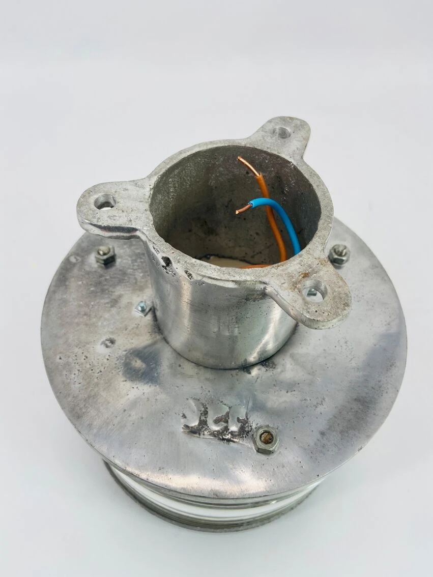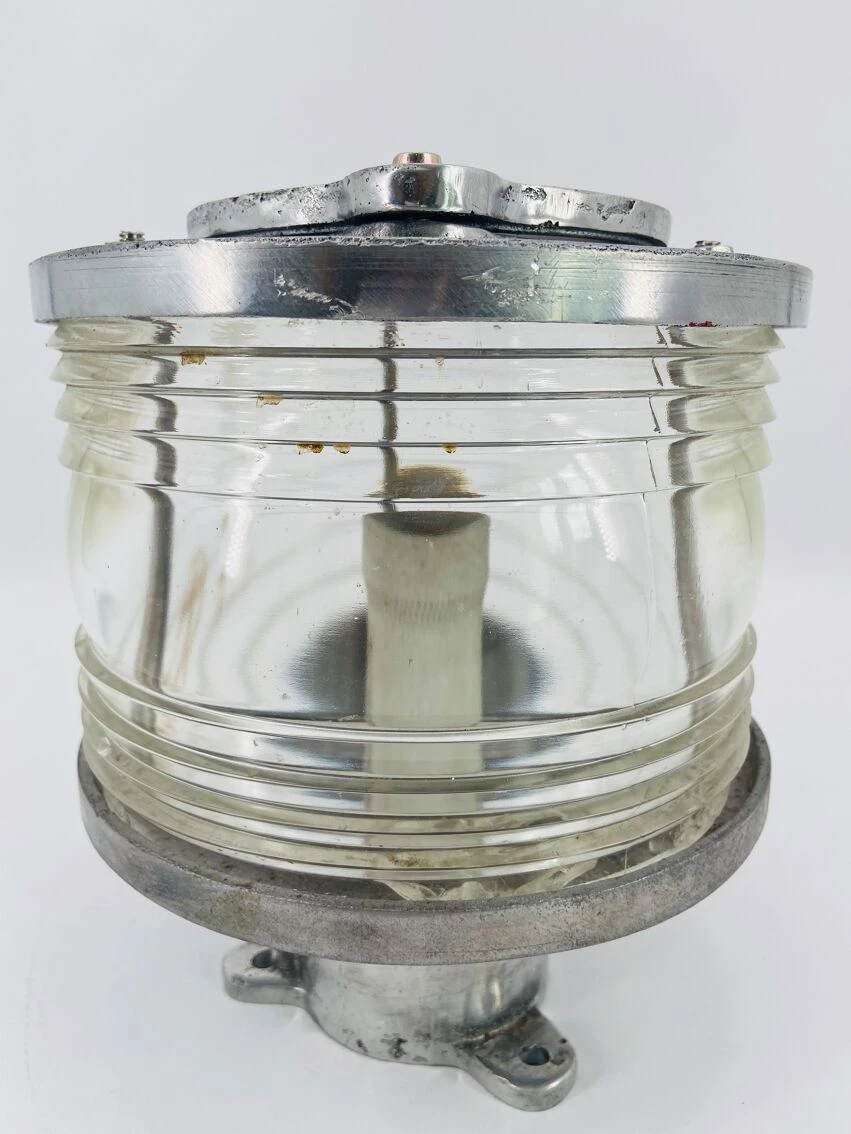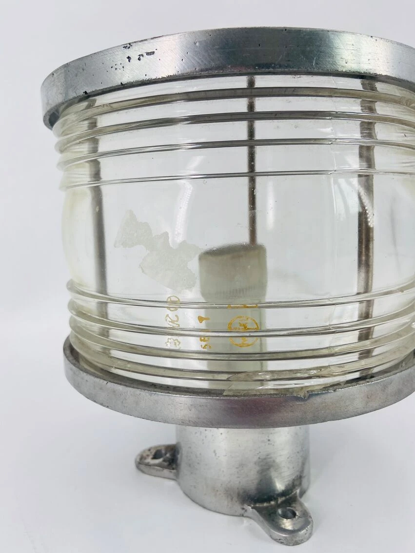 Cette ancienne lampe de bateau projette sa lumière à 360 degrés.