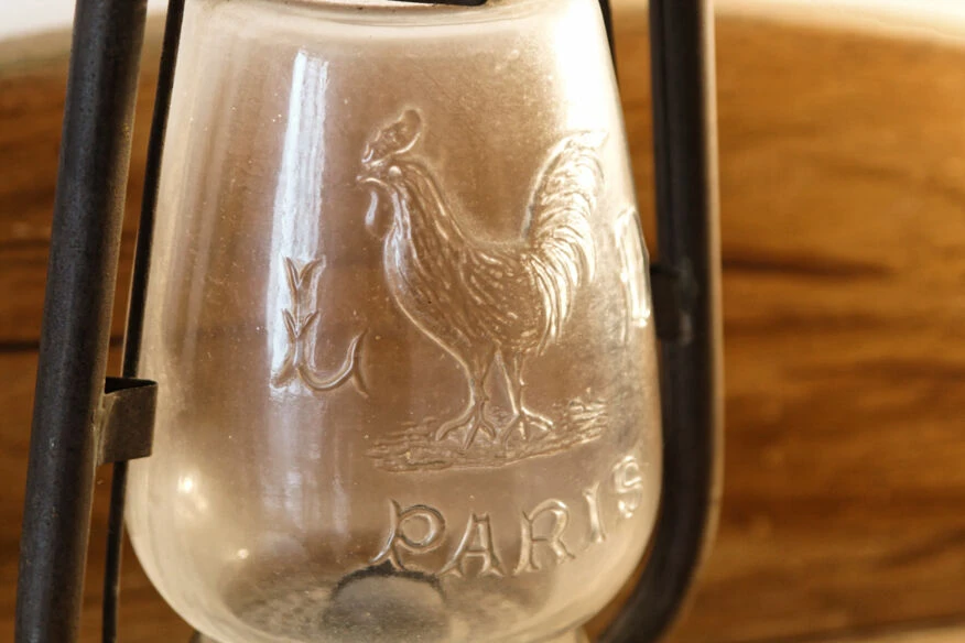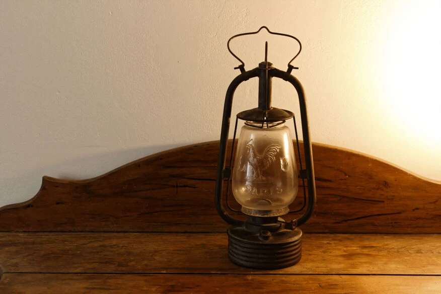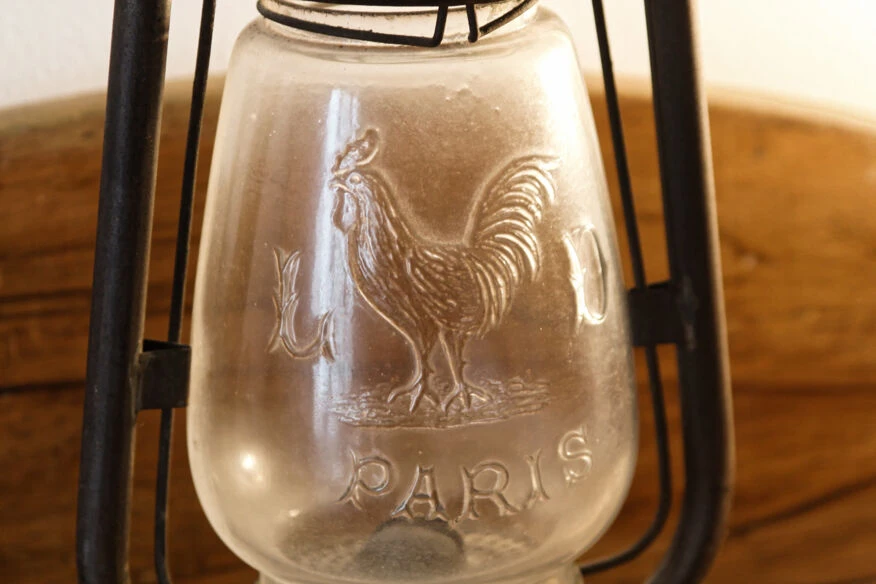 Belle lampe tempête, sif 500, marquée paris, avec coq.
