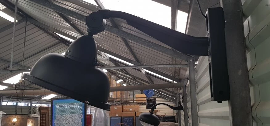 En parfait état de fonctionnement, complet avec sa potence et son socle de fixation murale.