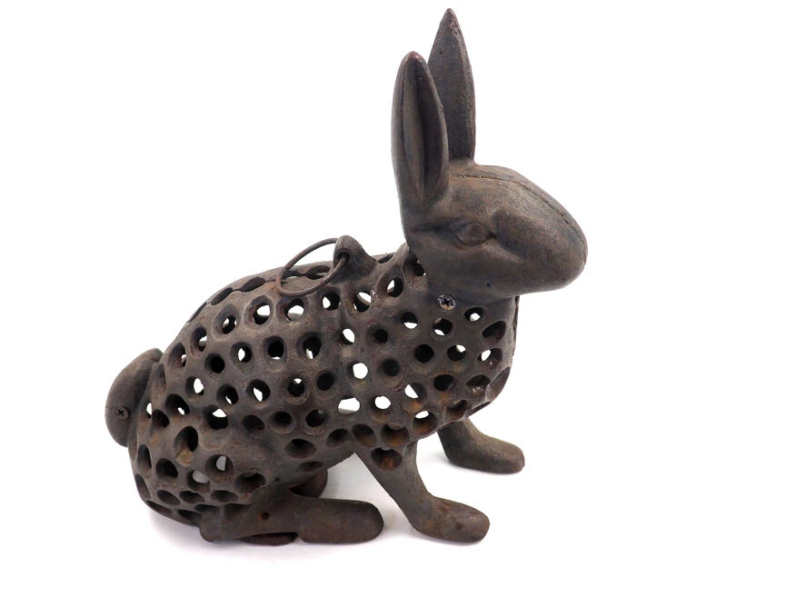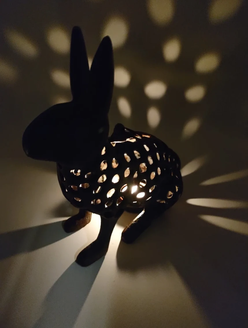 Pour imiter l’effet de clair de lune chatoyant, il y a un support pour une lampe à thé à l’intérieur du lapin.