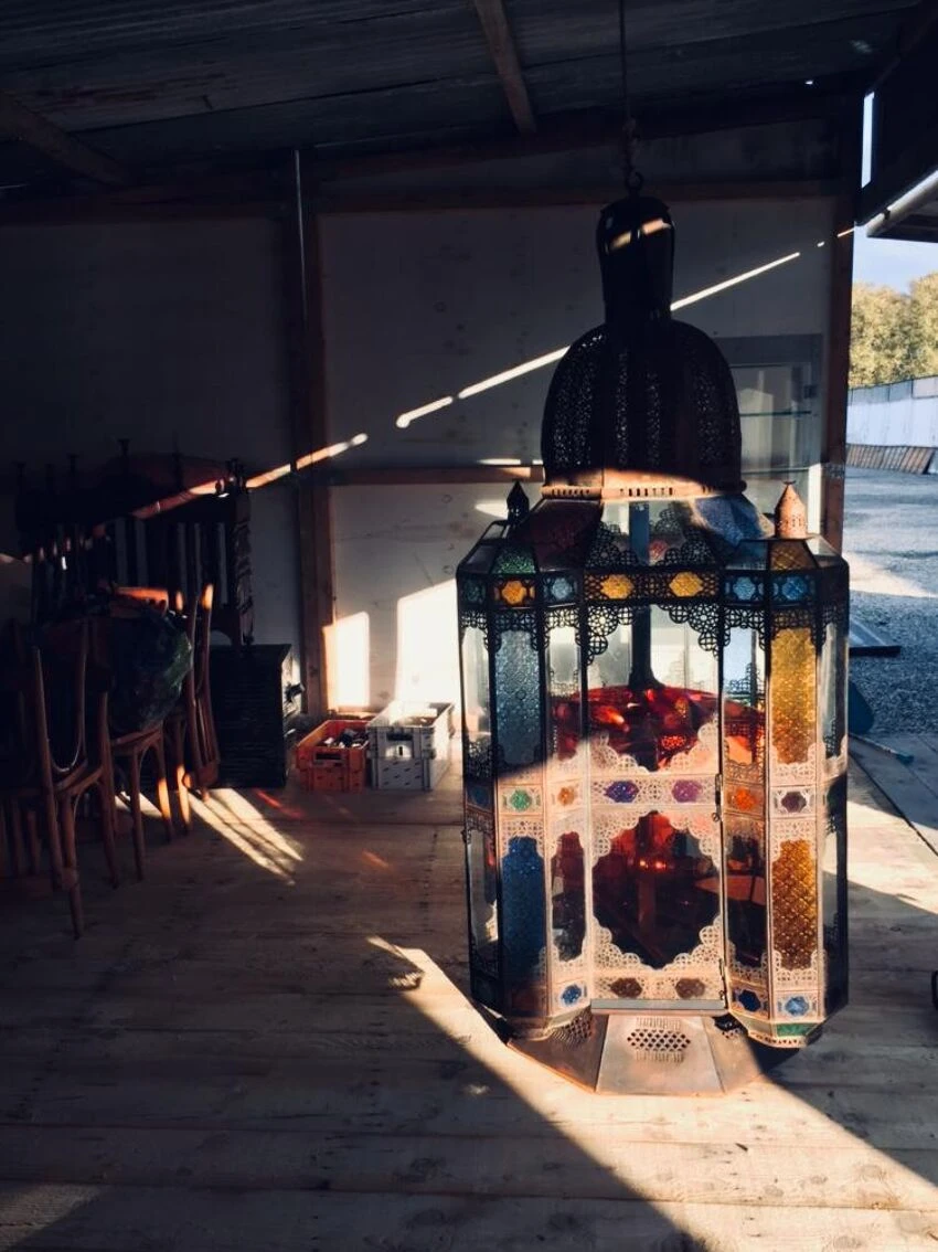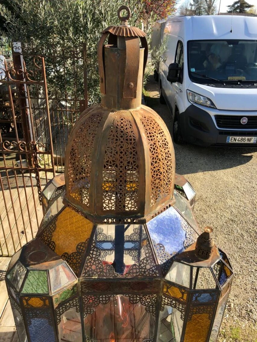 Superbe lanterne marocaine de 2m08 de hauteur, en très bon état.