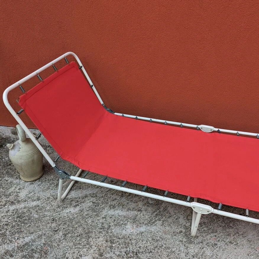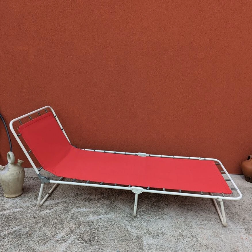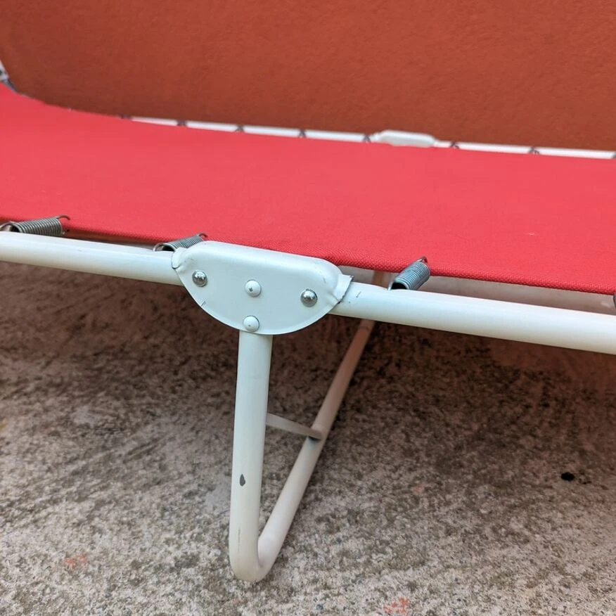 Fabriqué en ex-rda dans les années 80, ce transat est en superbe état, il semble n’avoir pas été utilisé.