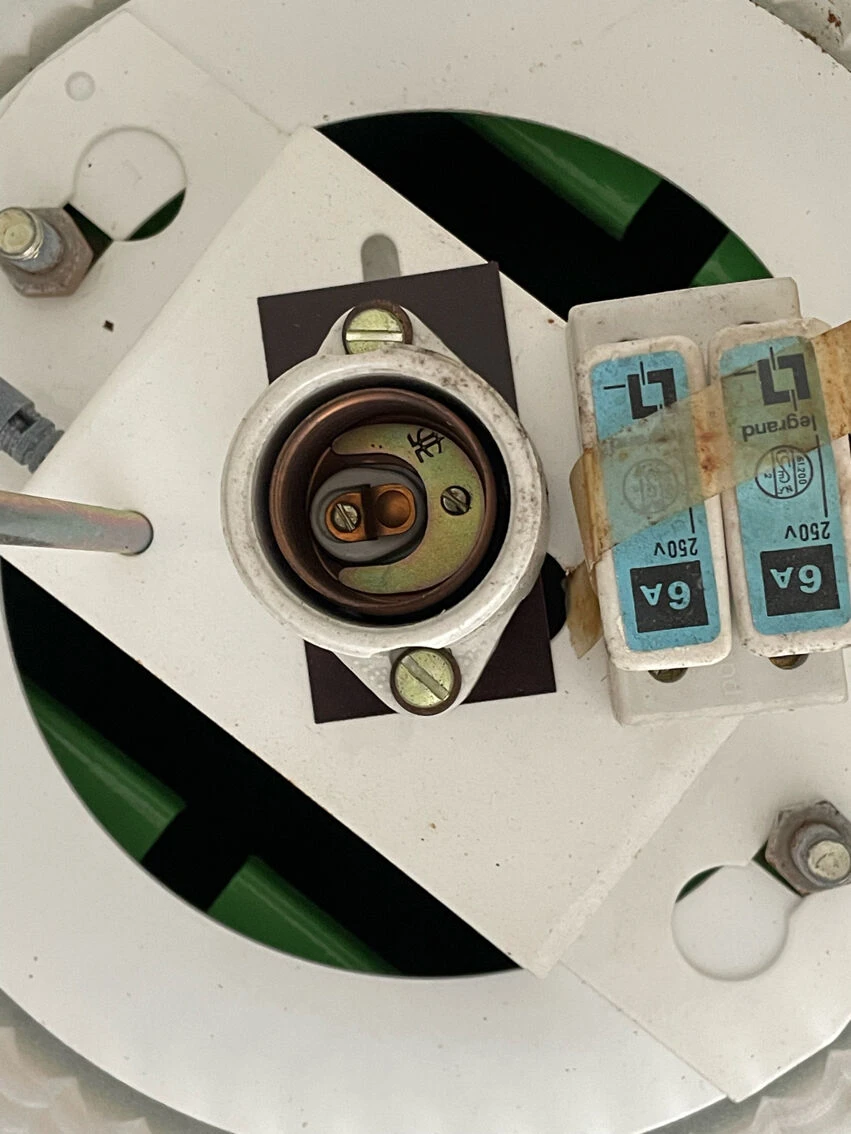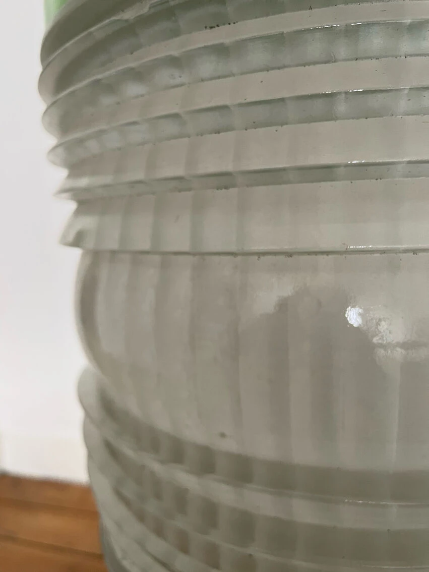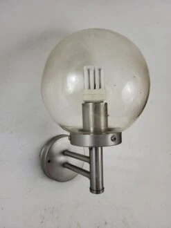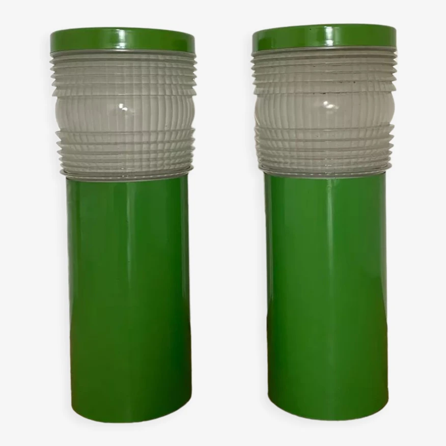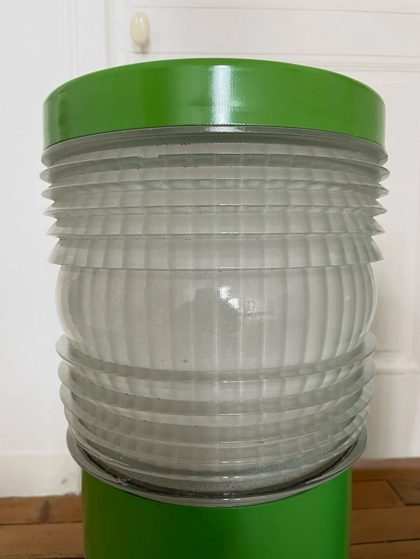 Lot de 2 bornes d’éclairage de jardin en métal et verre holophane, marque thorn-europhane, vers 1970.