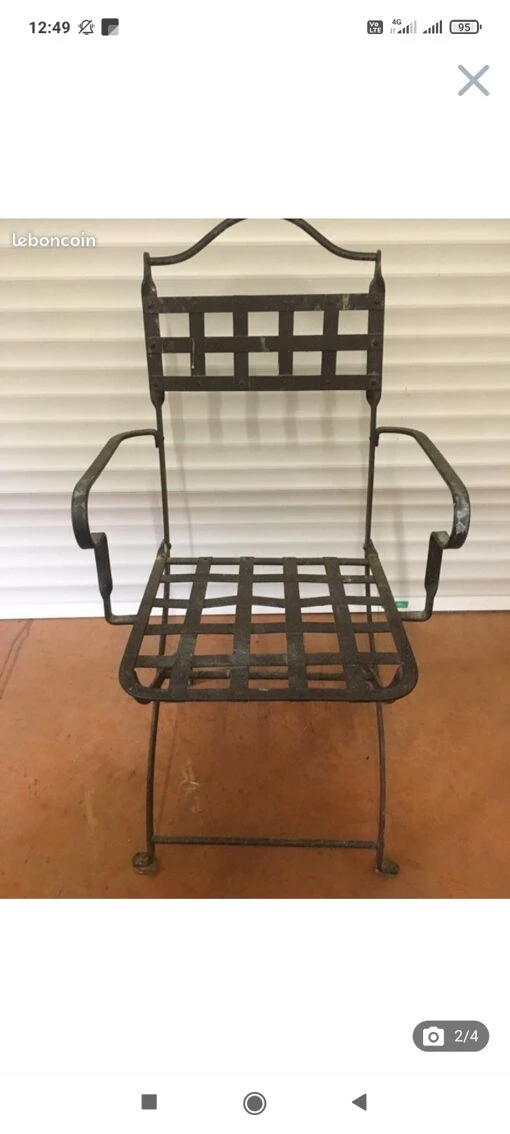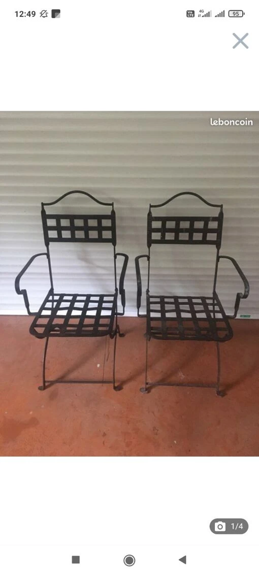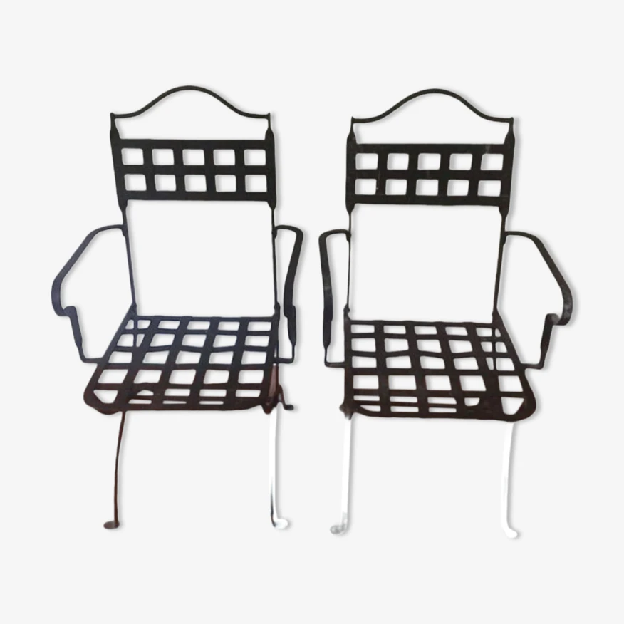 Lot de 2 chaises fer forgé avec accoudoirs.