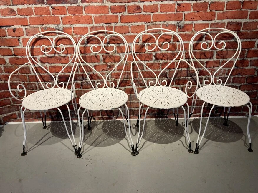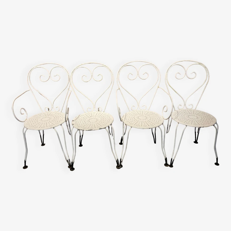 Lot de 2 fauteuils et 2 chaises de jardin en fer de couleur blanc.