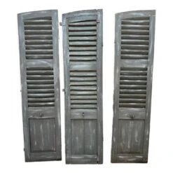Lot de 3 volets ancien, avaient été peints pour une deco de mariage, idéal deco tête de lit, paravent ou portes placard, etc, une paire puis un volet seul, bon état général et un peu mangé voir photos, beaucoup de cachet !!!.