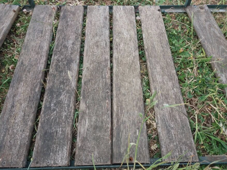 Ces planches sont en effet encore solides, pas pourries (du chêne peut-être pour se patiner ainsi sans casser?) mais ont l’aspect très usé qui va avec leur âge.