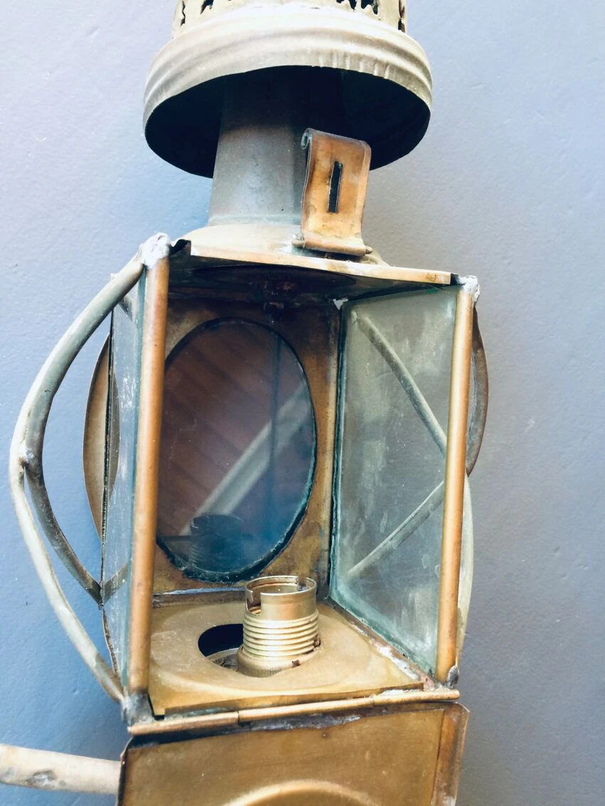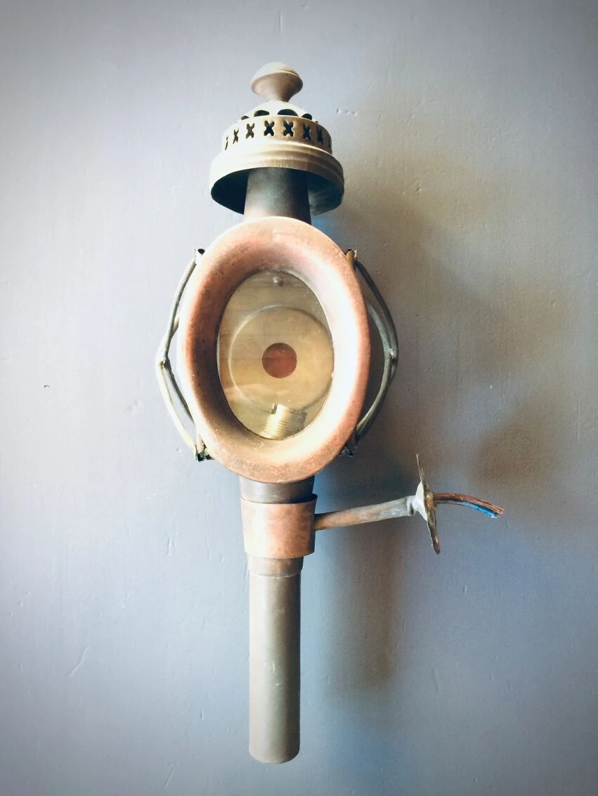 Nous vous proposons cette ancienne paire de lanternes de fiacre, vers 19oo en cuivre laissée dans son jus.