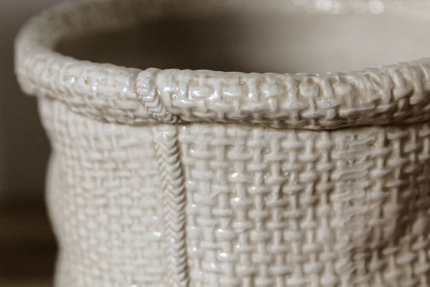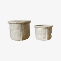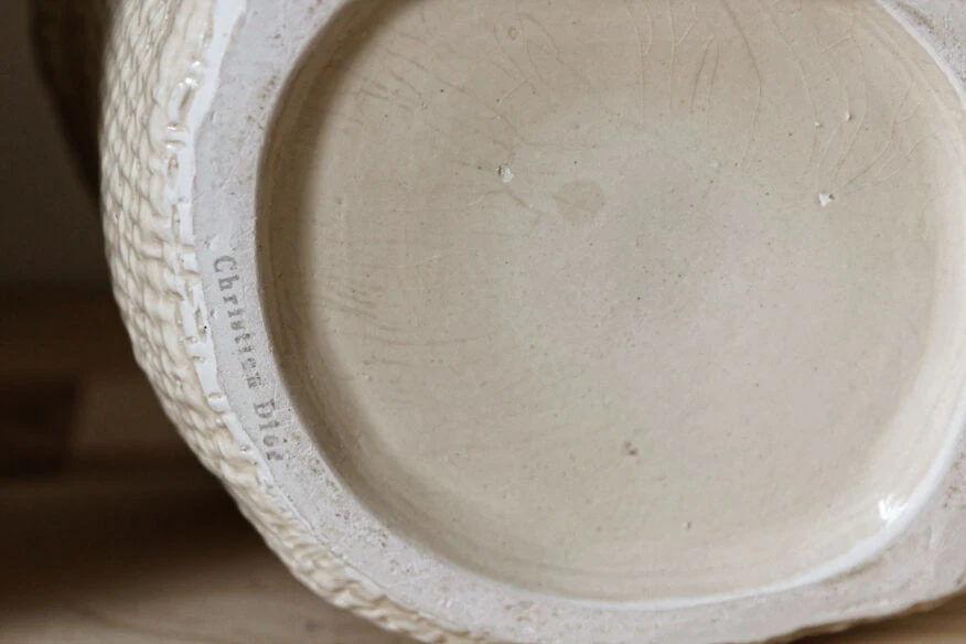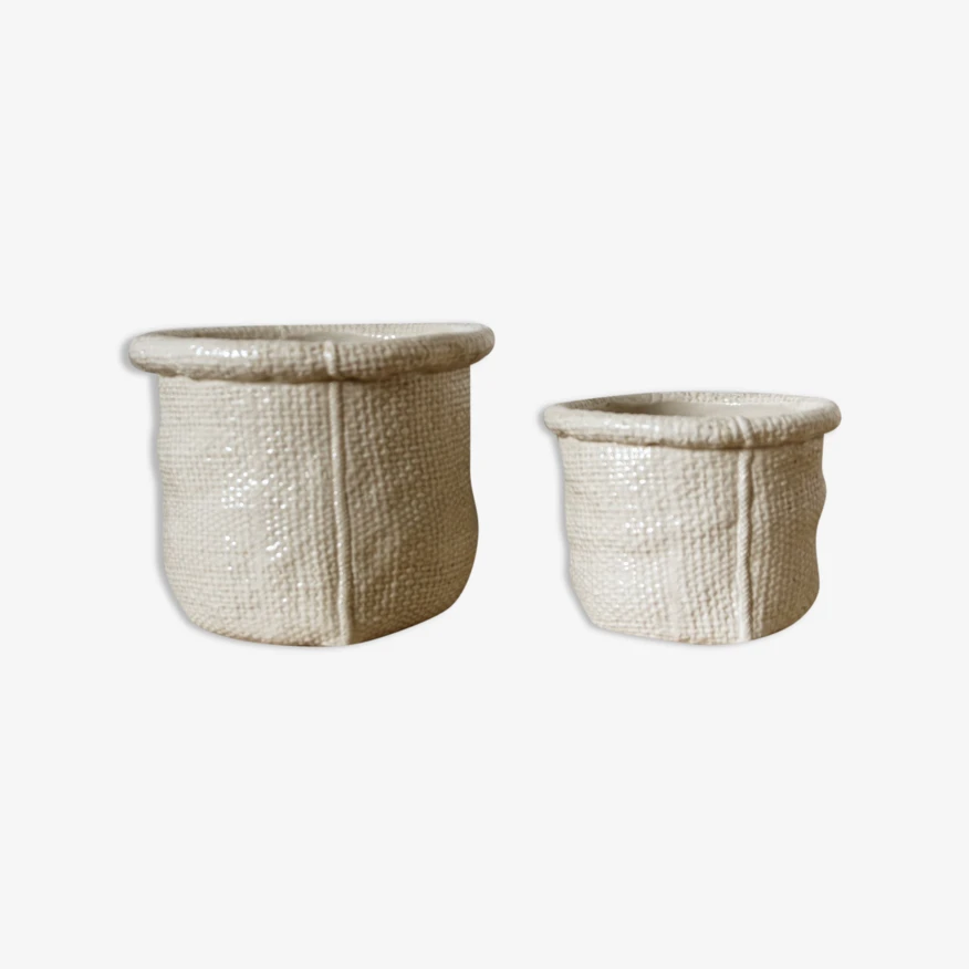 Très beau duo de cache pots en trompe l’oeil (imitation sacs), signés christian dior.
