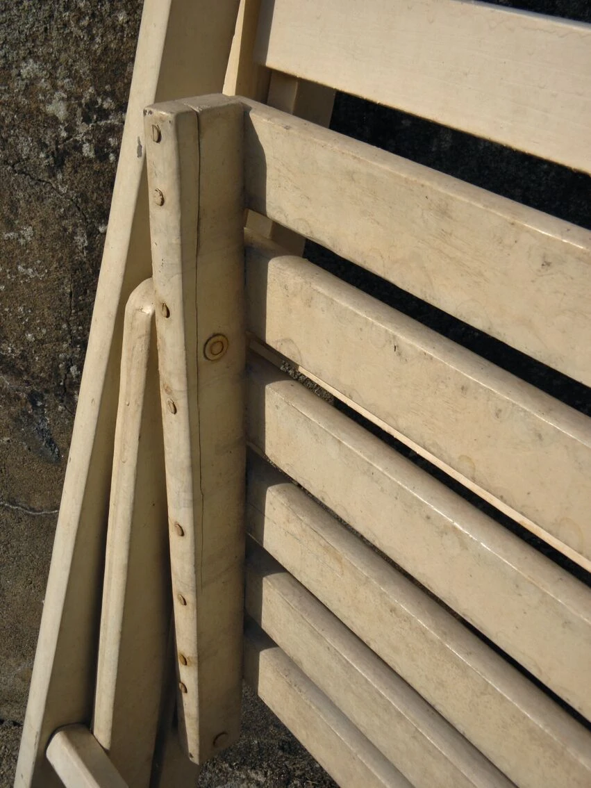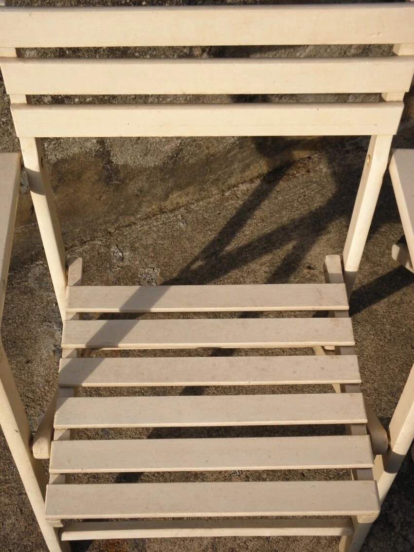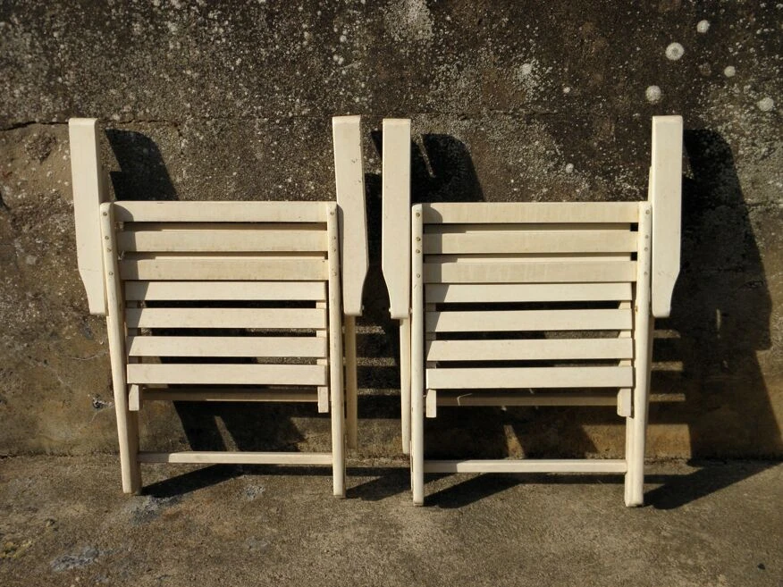 Paire de fauteuils pliants en bois laqué blanc.bonne tenue de la peinture.