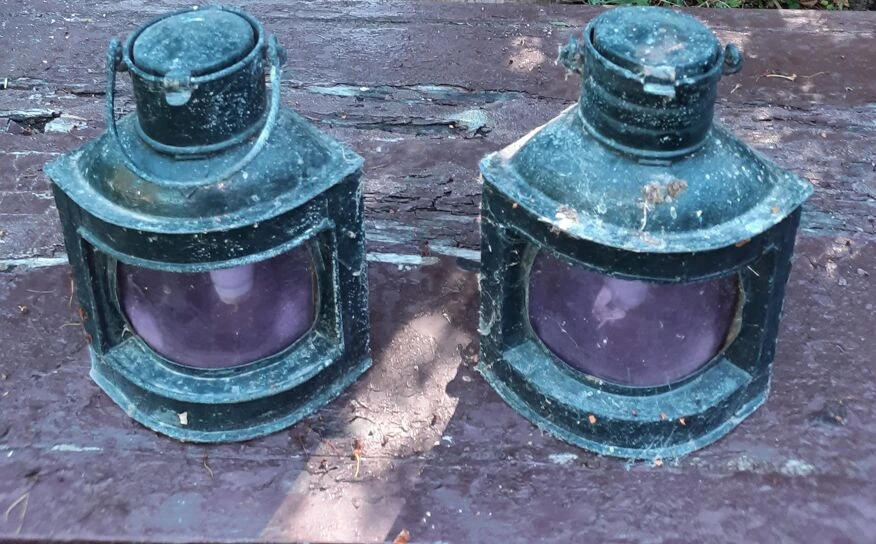 Paire de lampe de marine en tole de fer et en verre montées à l électricité.
