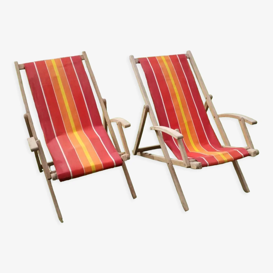 Paire de transats en toile très propre.