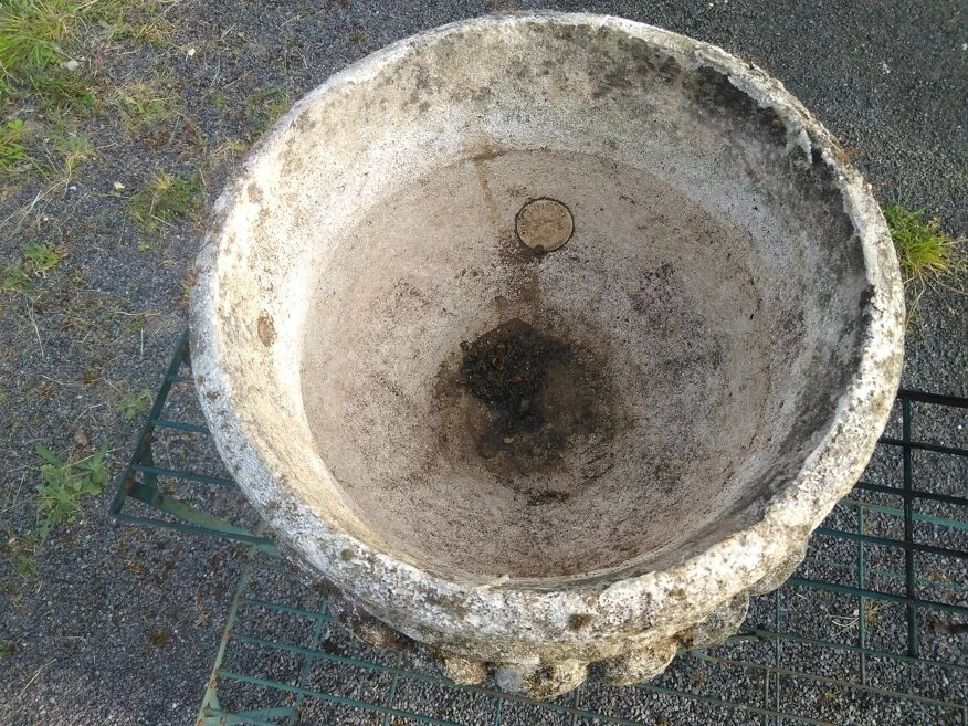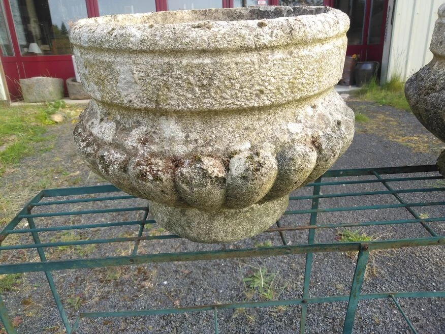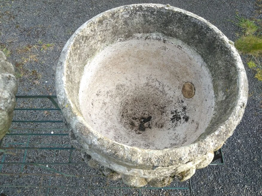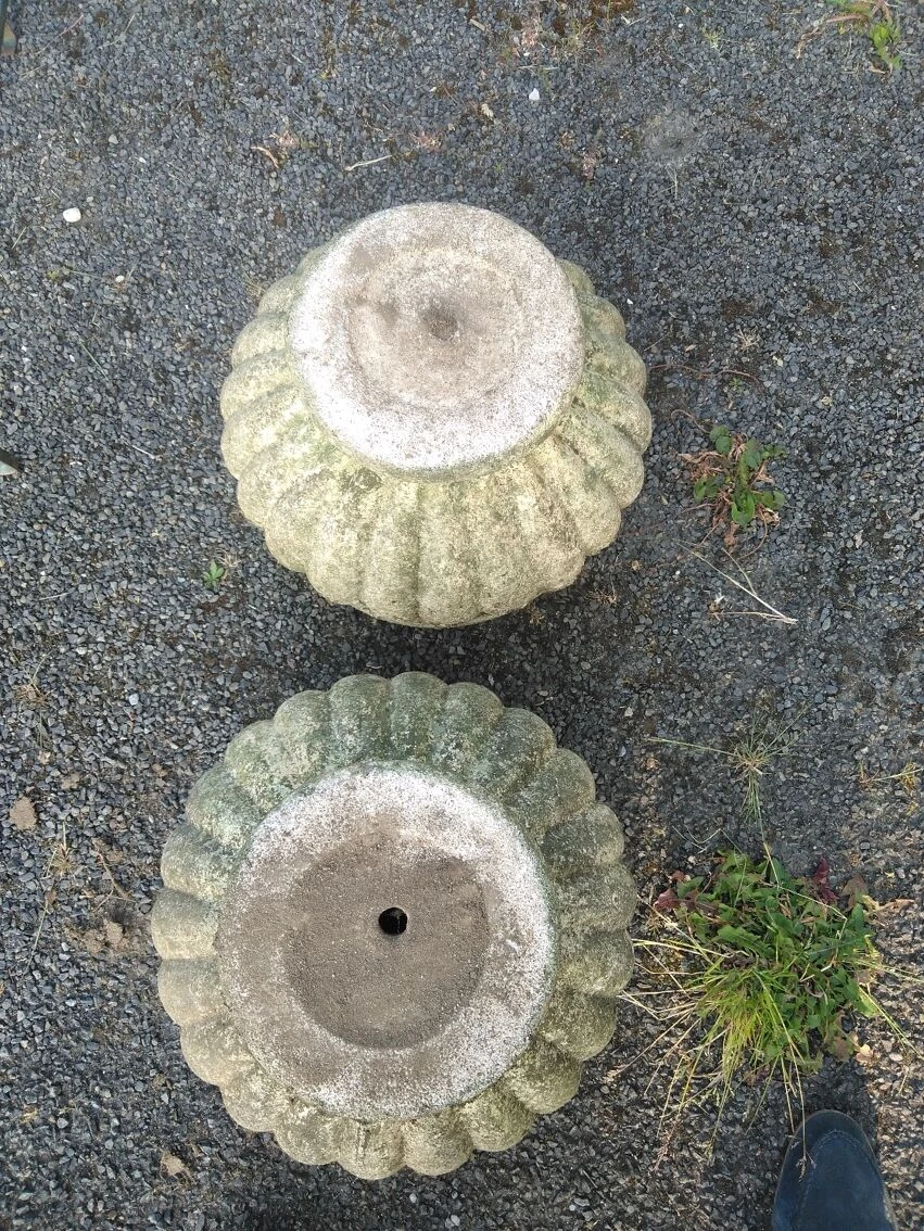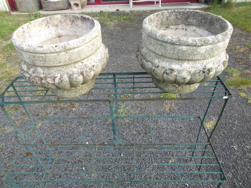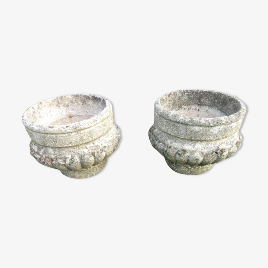 Paire de vasques anciennes des années 70 en pierre reconstituée.