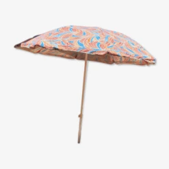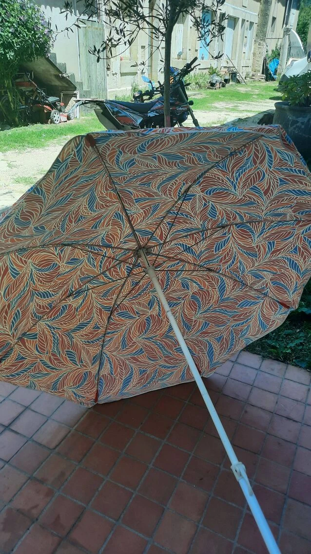 Parasol vintage de plage. Bon état. Couleur vive. Pas de trou. Diamètre du parasol ouvert 114 cm.