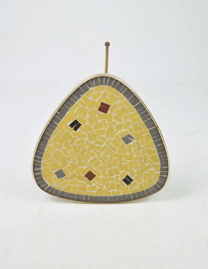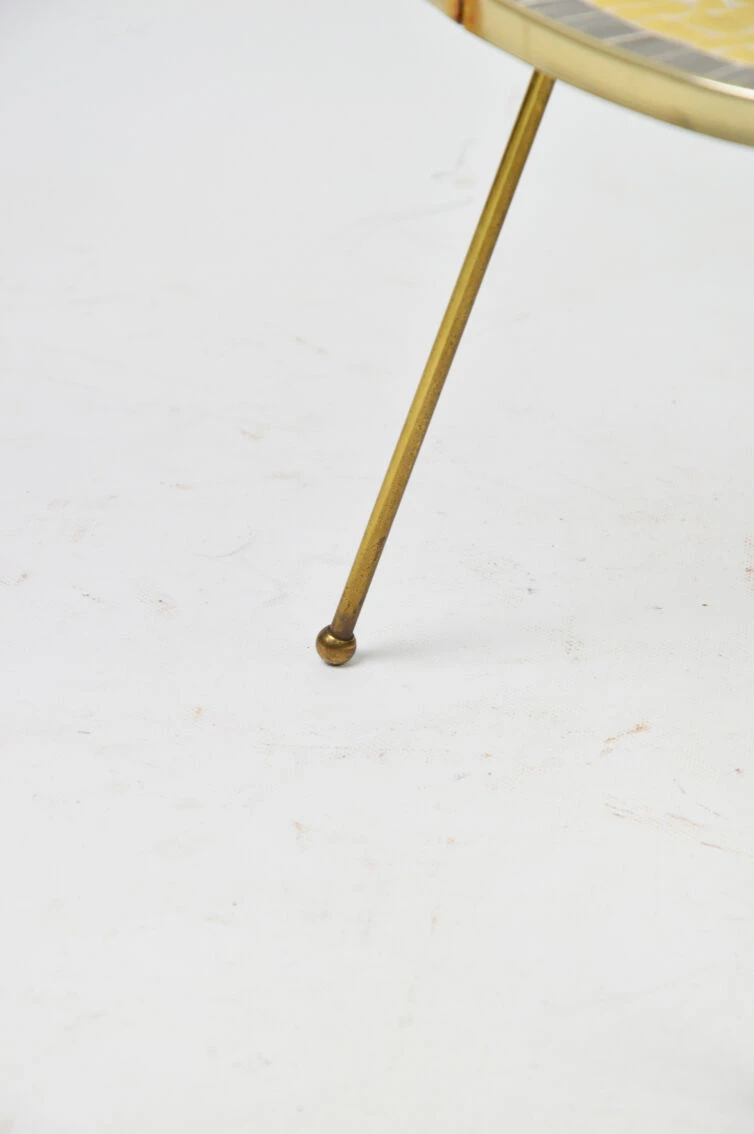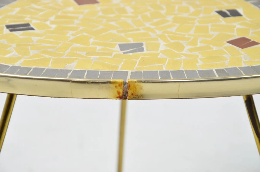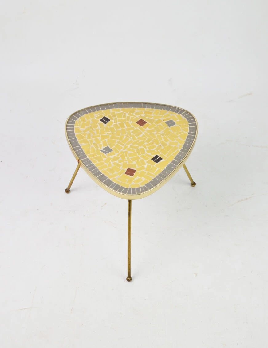 Un parterre de fleurs avec un plateau en mosaïque décorative.