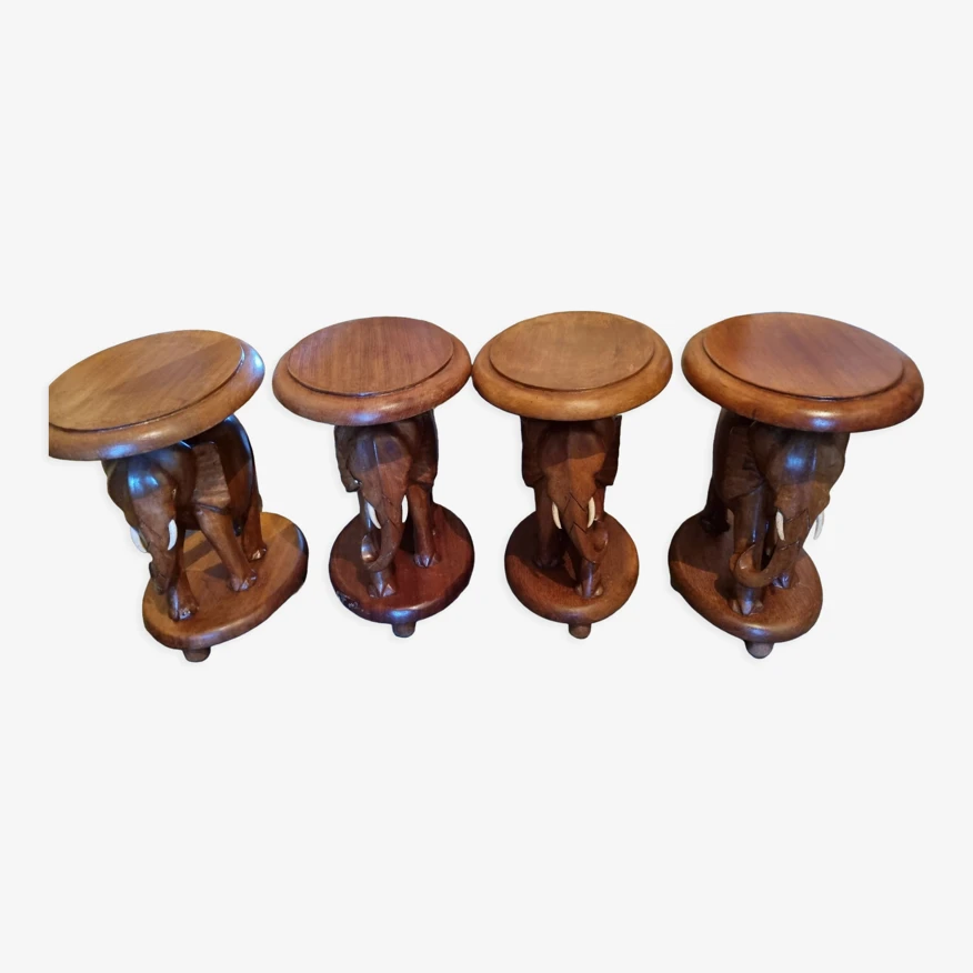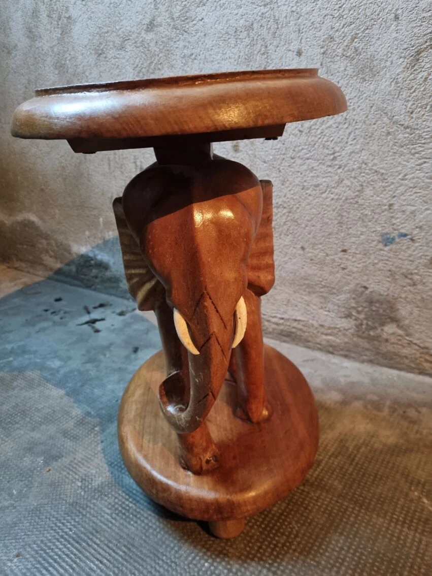 Porte-plante ou tabouret en bois massif, provenance côte d’ivoire, représentant un éléphant et datant des années 70.