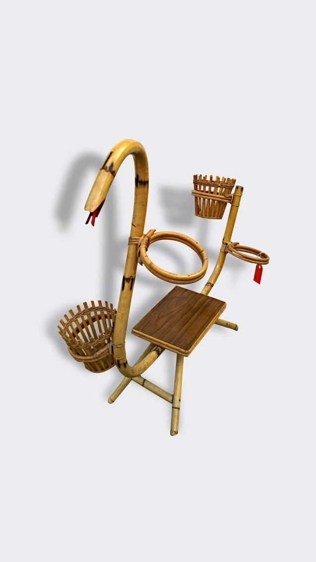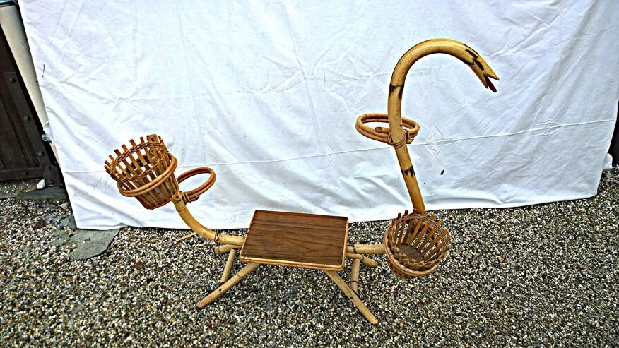 En forme de cygne, c’est un porte plante très rigolo. Il peut servir pour plein d’autre choses, tabouret, porte parapluie …