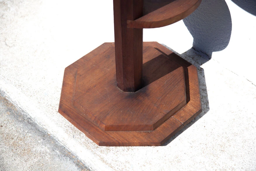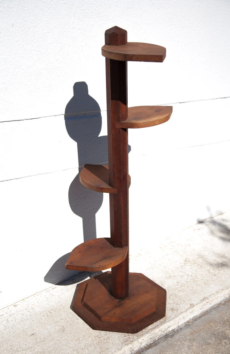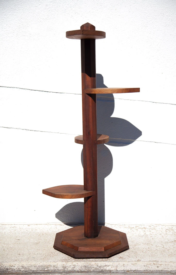 Porte-plante art déco en bois artisanal, sellette, décoration intérieur.