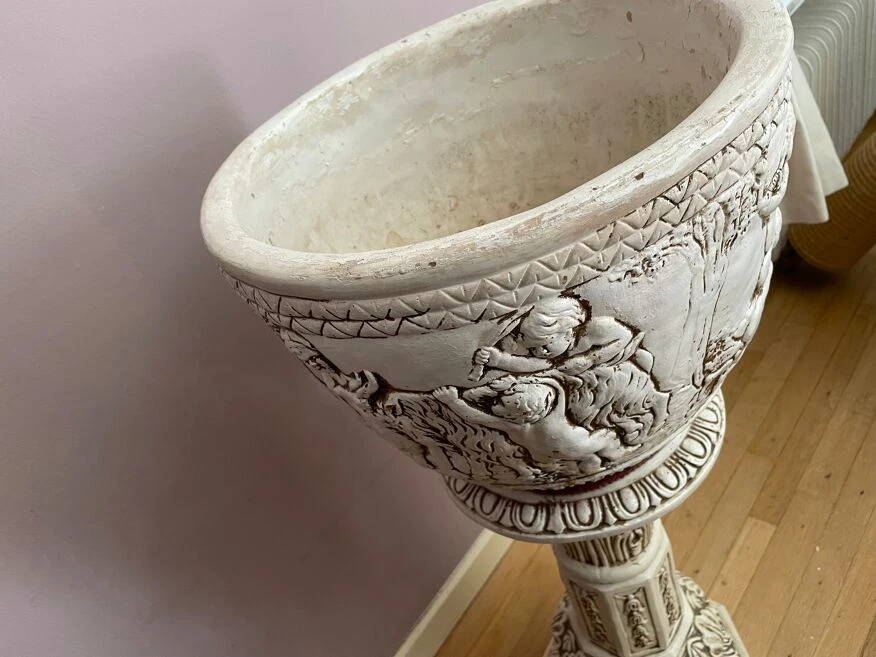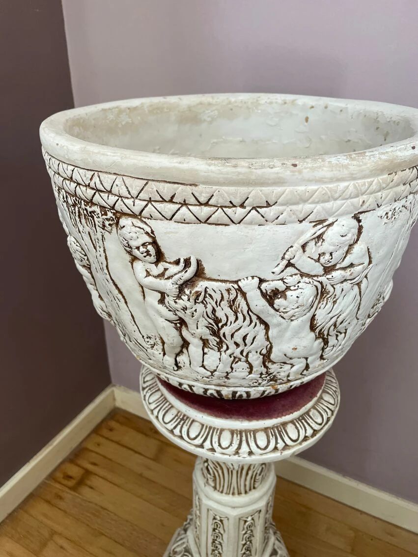 Porte plante en plâtre peinte en ivoire.c’est pour usage d’intérieur.